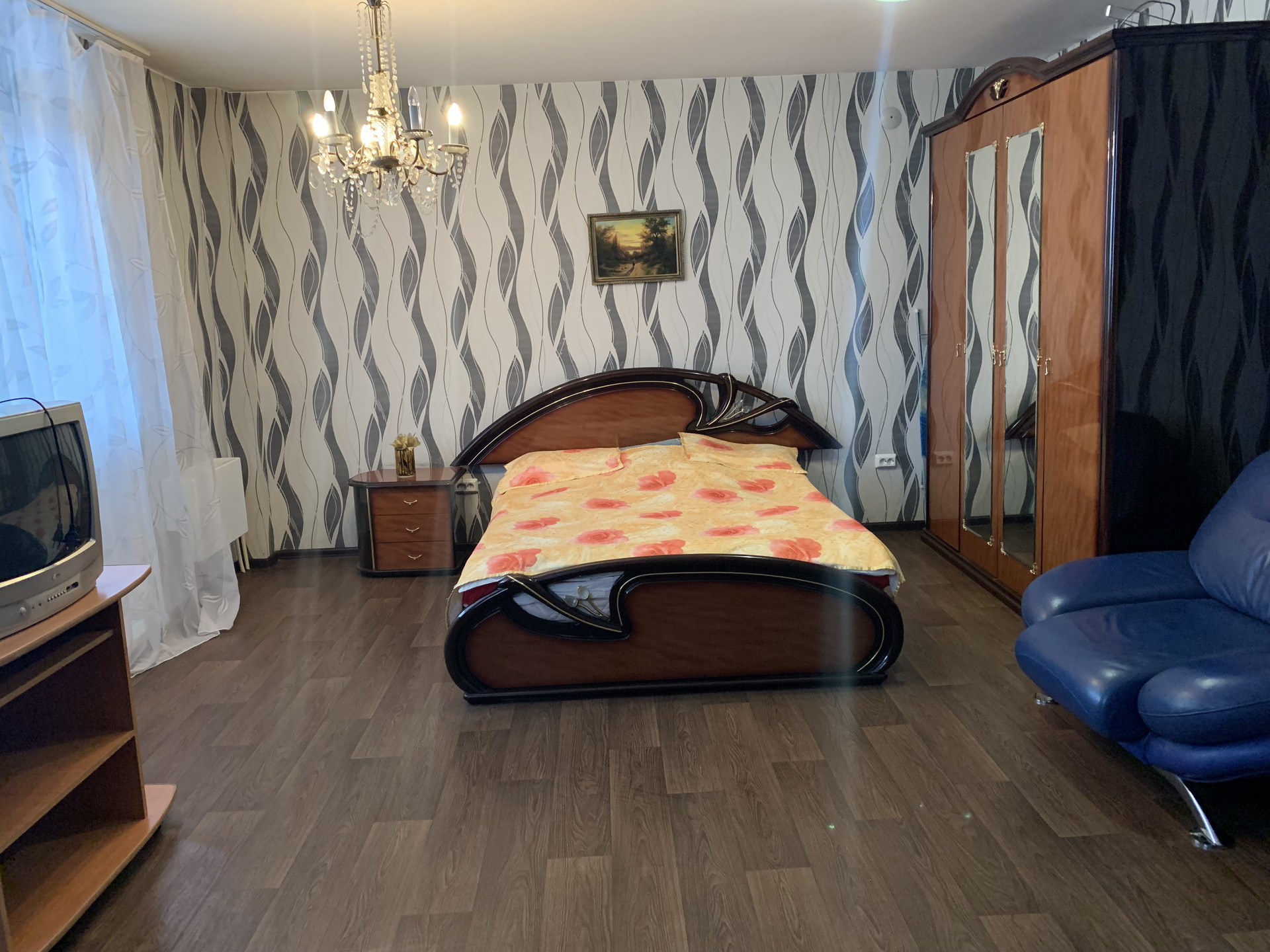 (Район ТРЦ Планета). Хорошее состояние квартиры, все в исправтом и чистом состоянии, площадь 39 м кв, 3-й этаж. Сдается с мебелью и бытовой техникой: Шкаф, кровать, кухонный гарнитур, стиральная машина, холодильник, электро плита, прихожая, СВЧ печь, телевизор. Рядом с домом автобусная остановка, магазины. Фото этой квартиры.