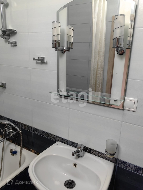 Ванная - зеркало, полочки, штора, гигиенический душ