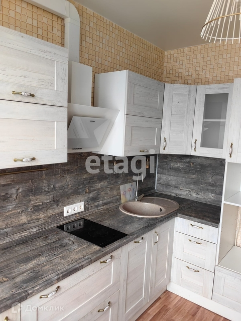 Кухня - встроенная мебель, стеклокерамика, посудомоечная машина, вытяжка, стол, 2 стула