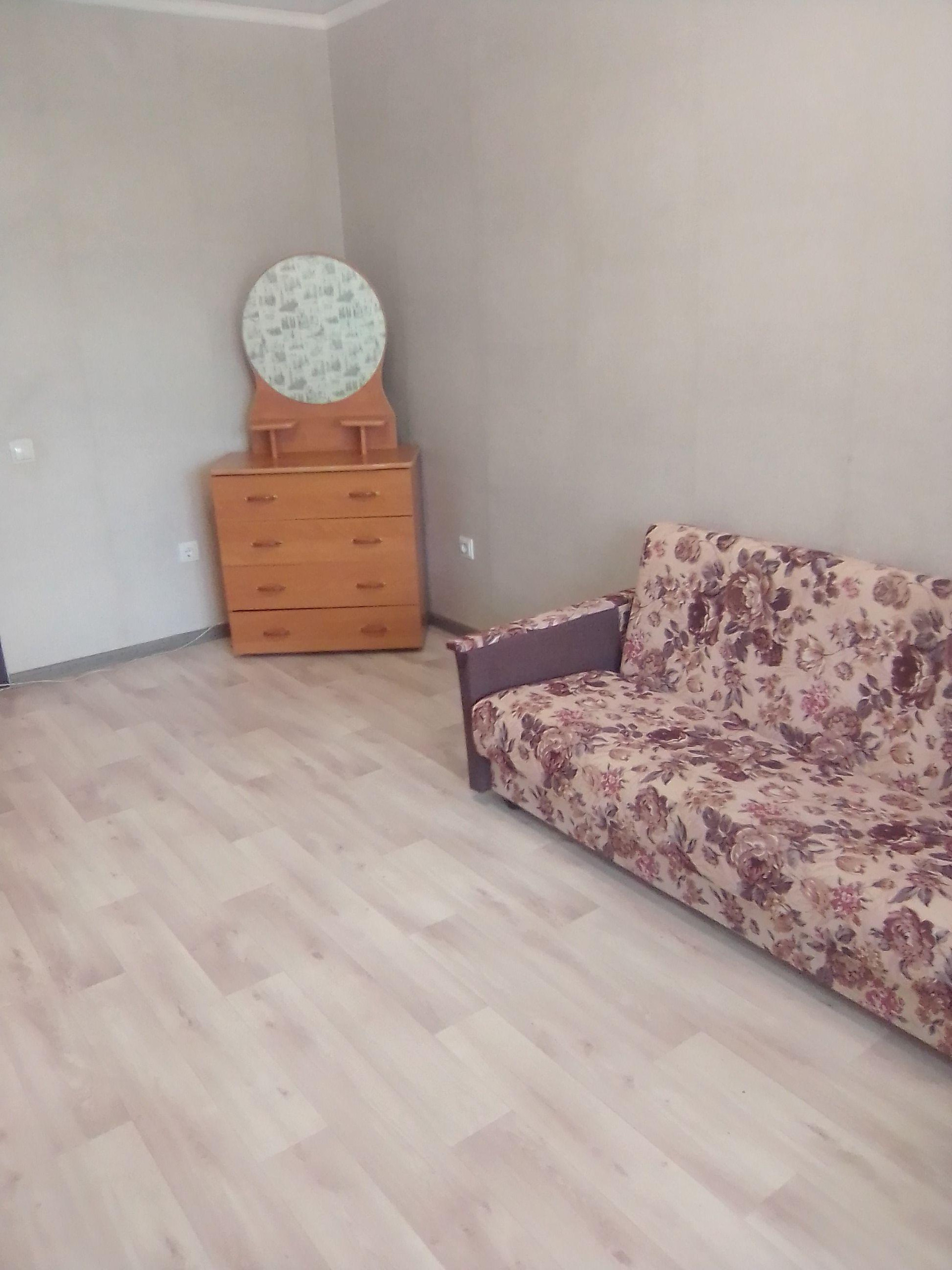 санузел совмещён.балкон.есть диван ,комод,холодильник,стол,табуретки,стиральная машинка,гарнитур,плита.аренда 16000 плюс вода,свет.рядом дет сад.площадка детская. домашние животные не приветствуются.