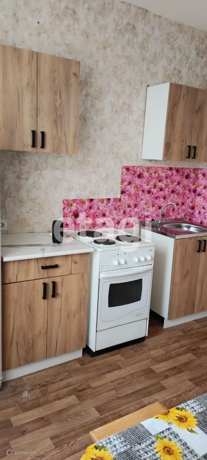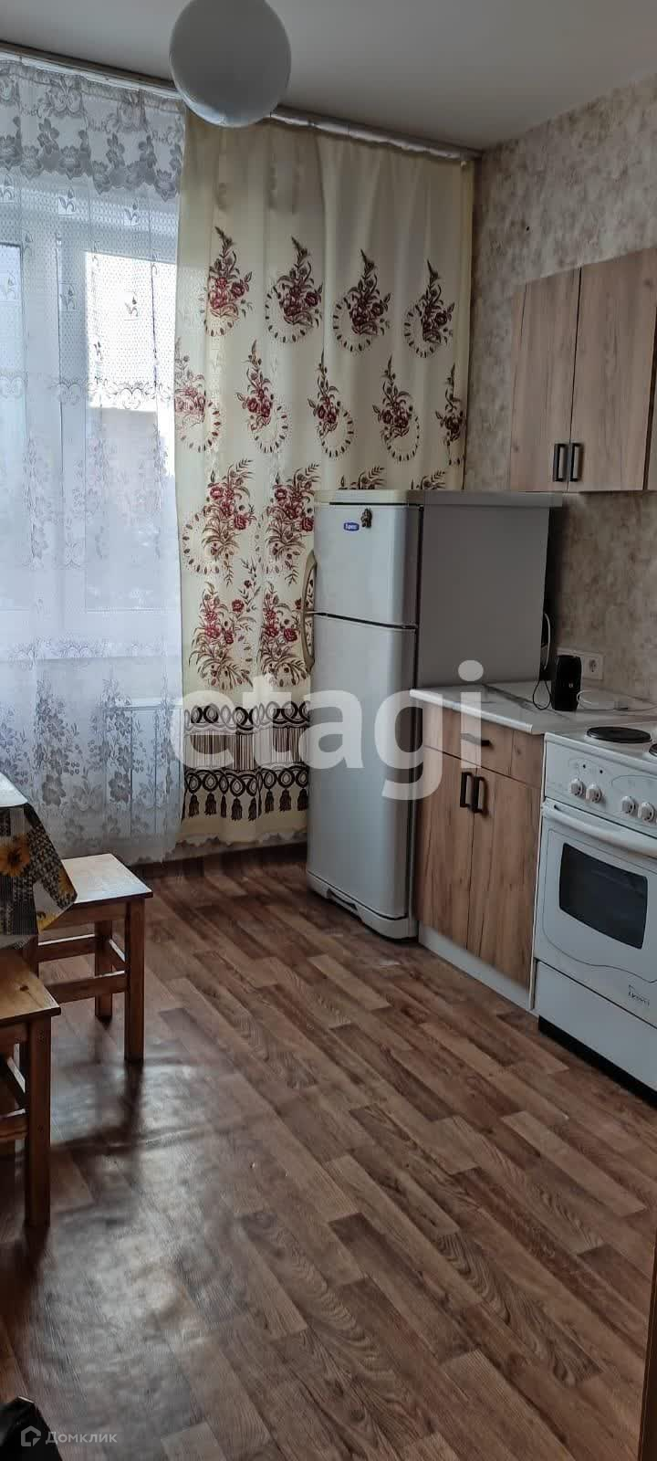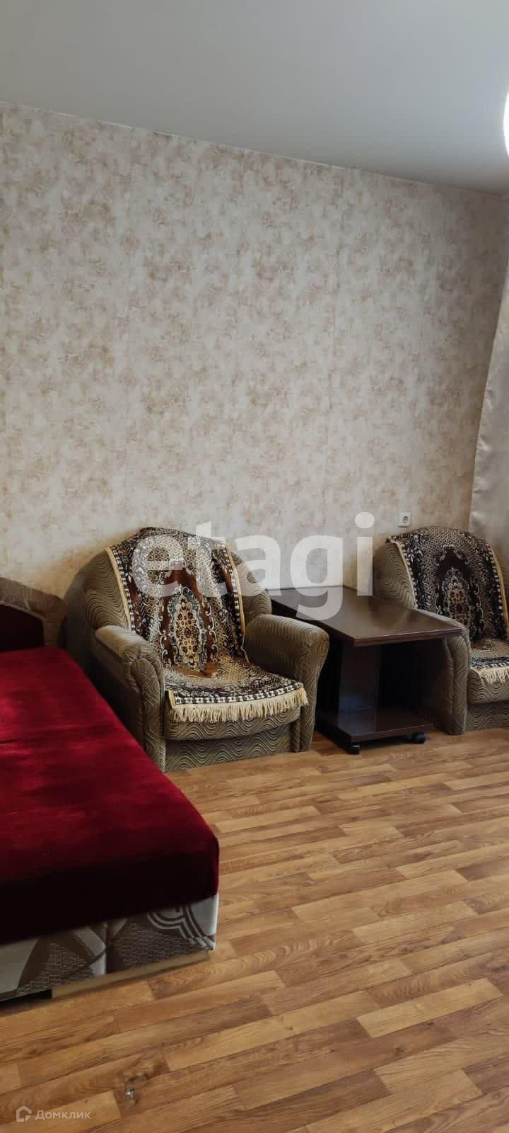 В квартире есть всё необходимое для комфортного проживания: холодильник, плита, стиральная машина, телевизор, кухонный гарнитур, обеденная зона, диван, кресла и шкаф.