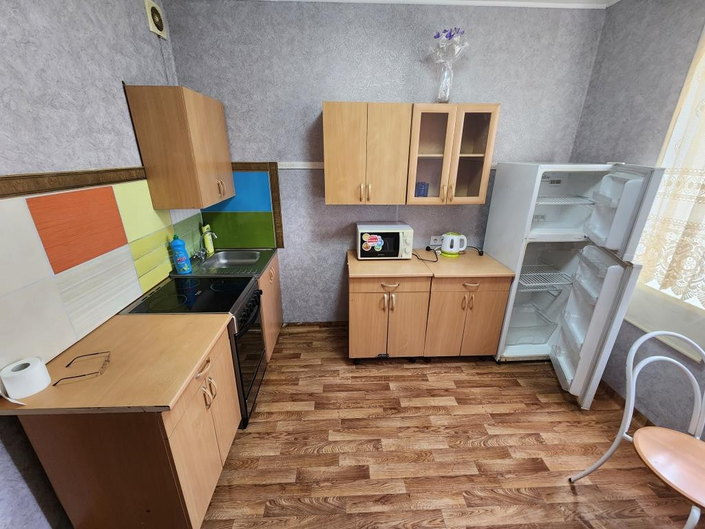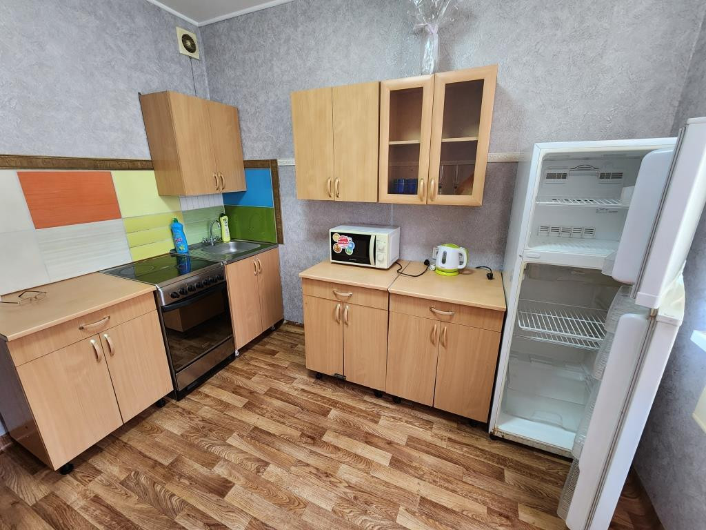В квартире есть все, для проживание: кровать и софа, тумба под телевизор, шкафы - 4 шт, стулья, столы, кухонный гарнитур, стиральная машинка, холодильник, микроволновая печь, чайник и др.