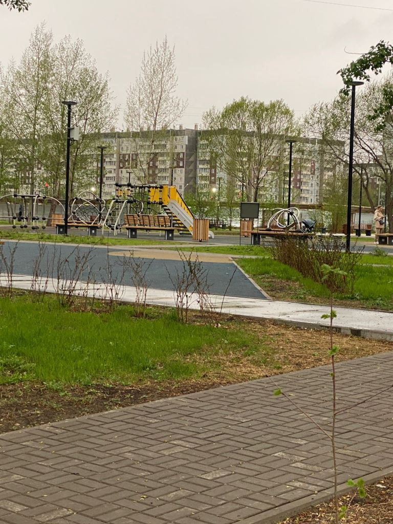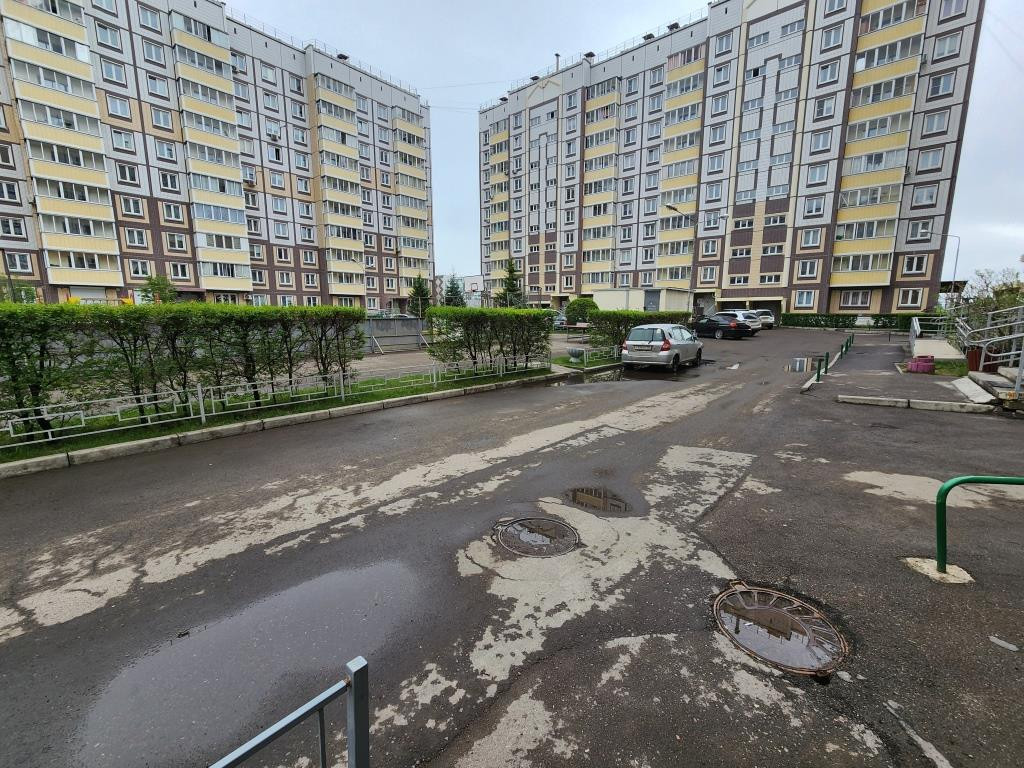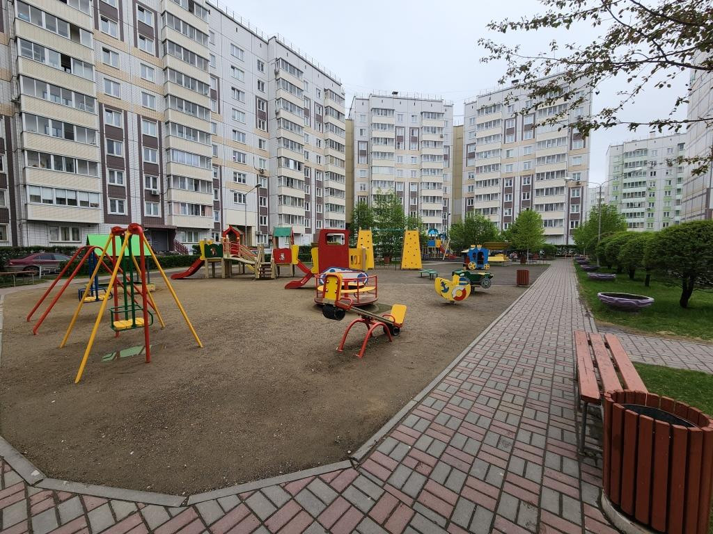 Чистый и облагороженный двор, есть сквер, детская площадка, чистый подъезд, тихие соседи.