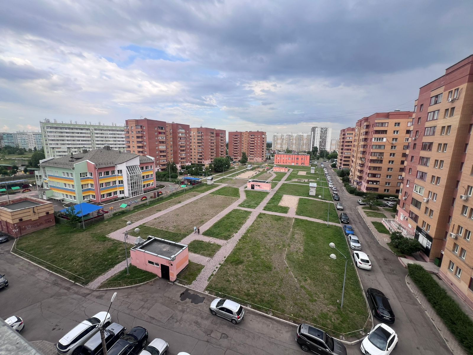 Рядом с домом расположены школы, детские сады и магазины, что делает этот район особенно удобным для семей.
