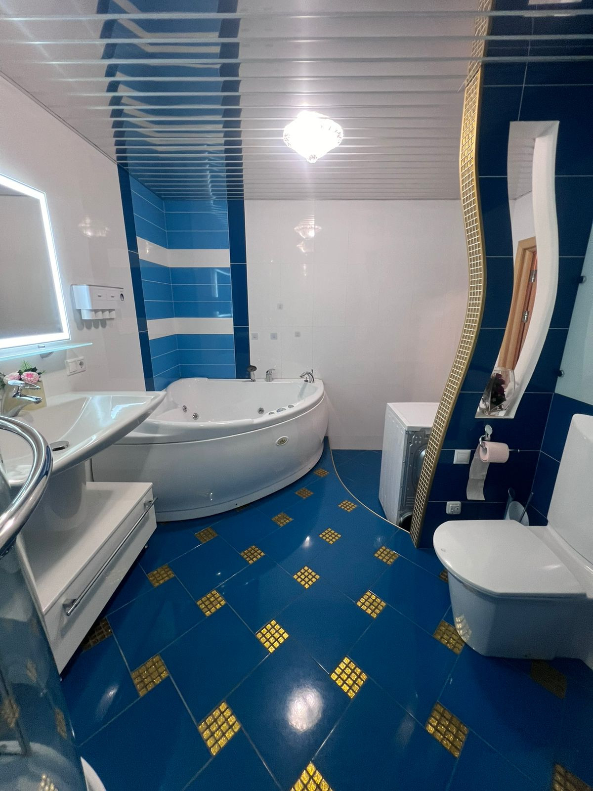 В квартире два санузла: один совмещённый с джакузи и душевой и один отдельный.