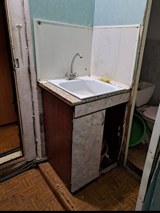 В удовлетворительном состоянии. Цена 9000, все включено. Желательно не русским мужчинам, которые работают на стройке, чтобы были с руками и могли что-то подделать в плане ремонта.