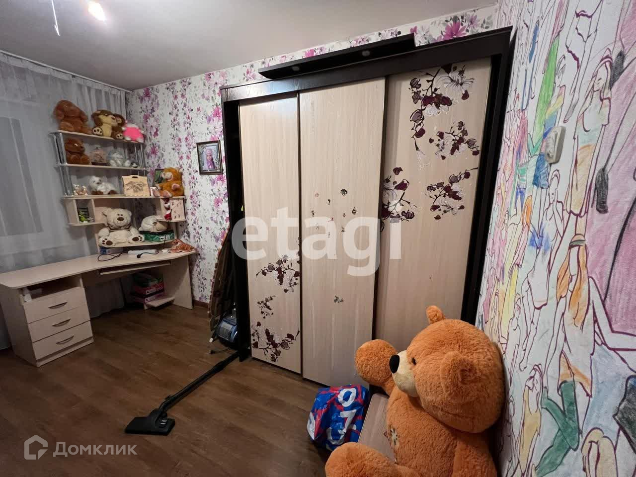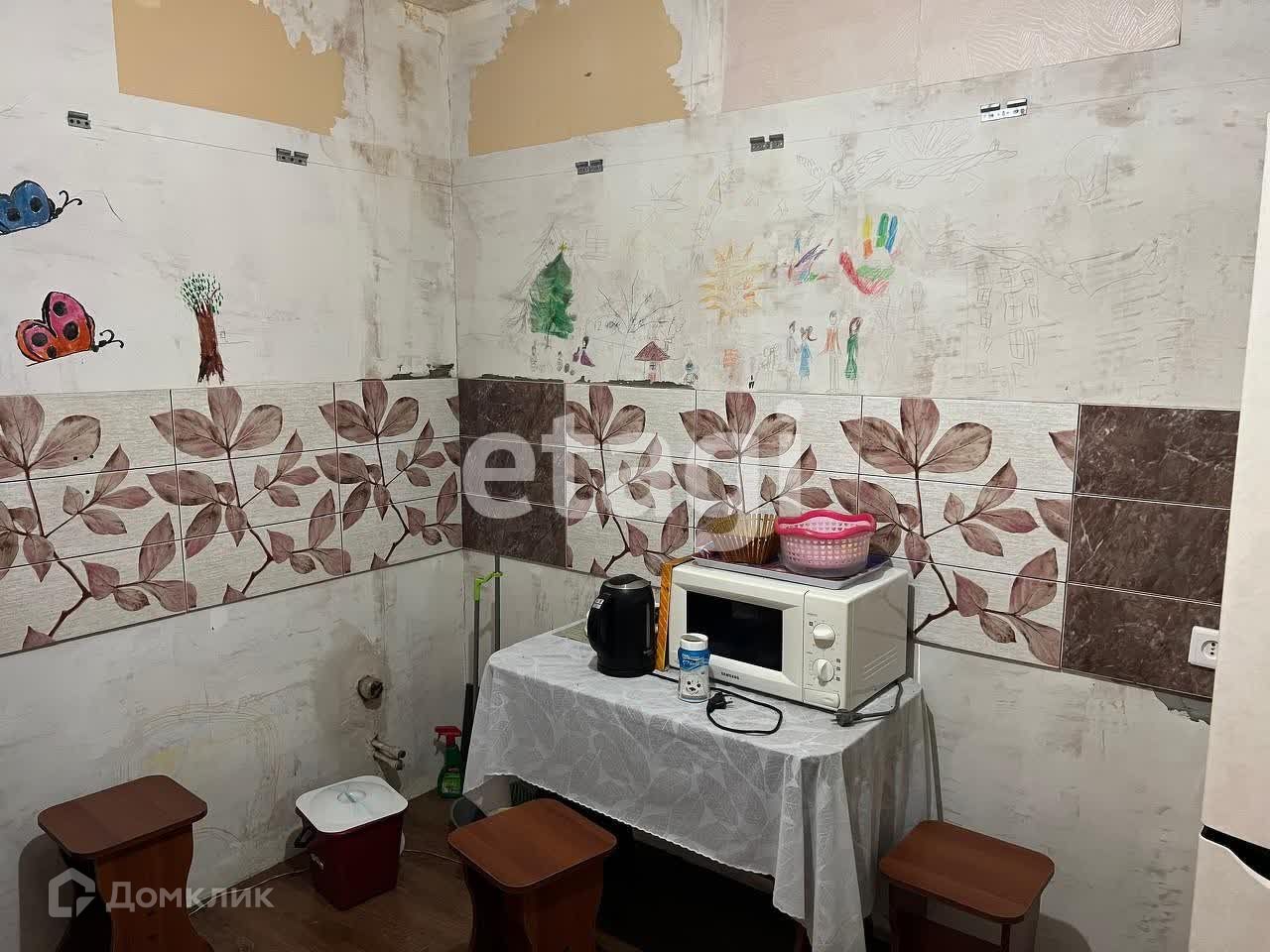 В квартире выполнен косметический ремонт, но есть некоторые моменты по обоям. Постелен новый ламинат, установлена хорошая техника и мебель. В зале стоит большой телевизор, на кухне есть вся бытовая техника.