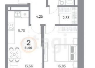 Продажа 2-комнатной квартиры, 51.4 м2