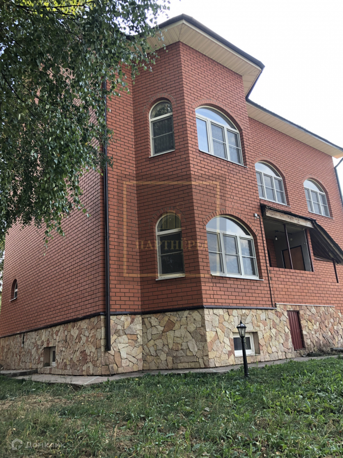 ДОМ 380 м². из бетонных блоков, в отделке из облицовочного кирпича, состоит из 3-х этажей с балконами и цокольного этажа.