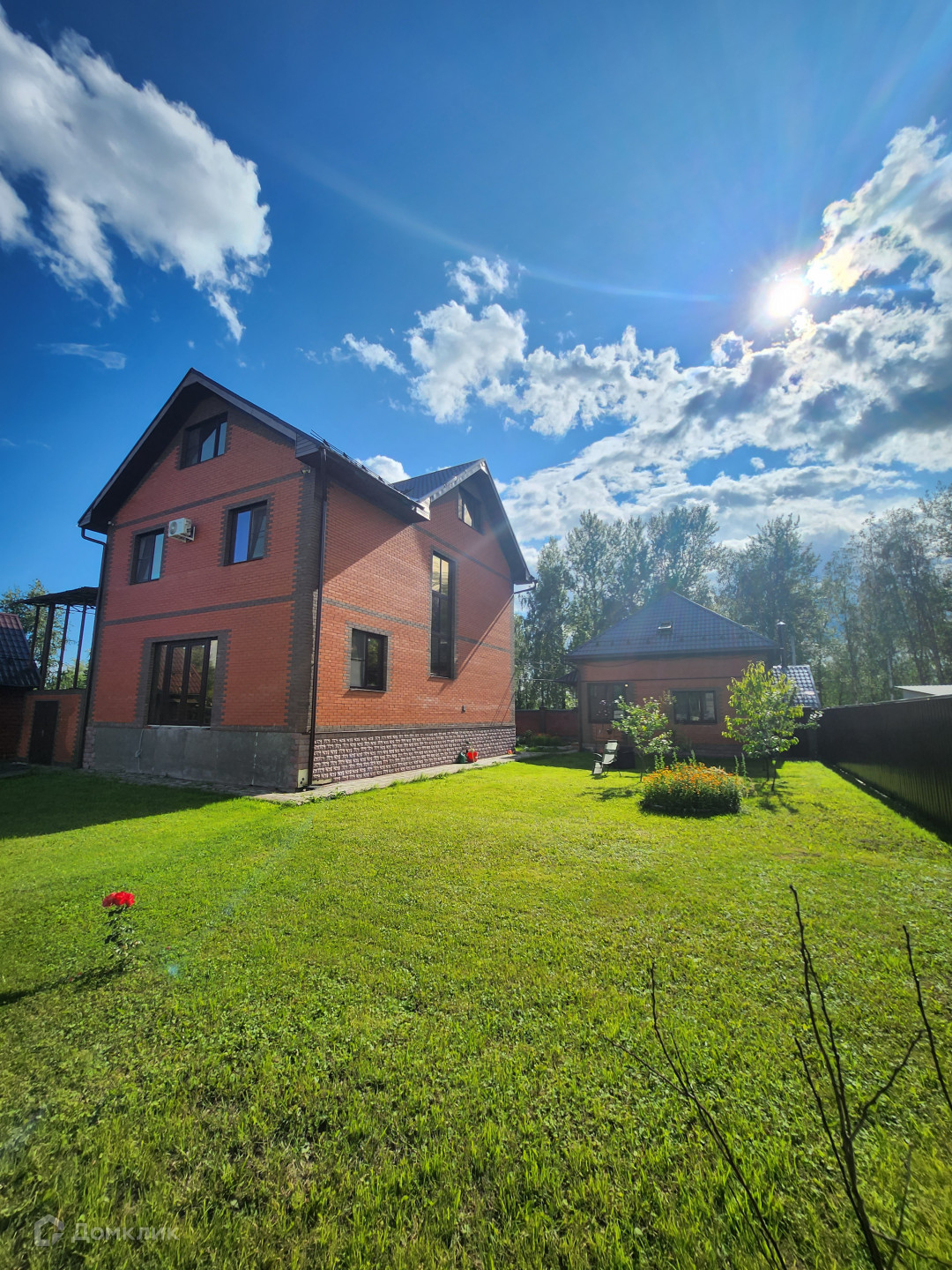 Арт. 48809541 Продаю отличный дом в г.Краснозаводске, полностью готовый к проживанию, с магистральным газом, городской водой, электричестивом 15 кВт, двумя парковочными местами. На участке два дома ,гостевой дом 98 кв.метров на плитном фундаменте.На первом этаже гостевого дома, прихожая, сан.узел, кухня, гостинная и большая спальня на втором этаже. В основном доме на первом этаже, две гардеробные, сан.узел, гостевая спальня, кухня-гостинная,вход в подвальное помещение.На втором этаже три спальни и сан.узел, на третьем этаже спальня ,бильярдная и комната под домашний кинотеатр. Участок ровный, засеян газоном, есть большой бассейн, прекрасная русская баня,также есть место под зимний сад.Дом строился для себя,применялись дорогие отделочные материалы.