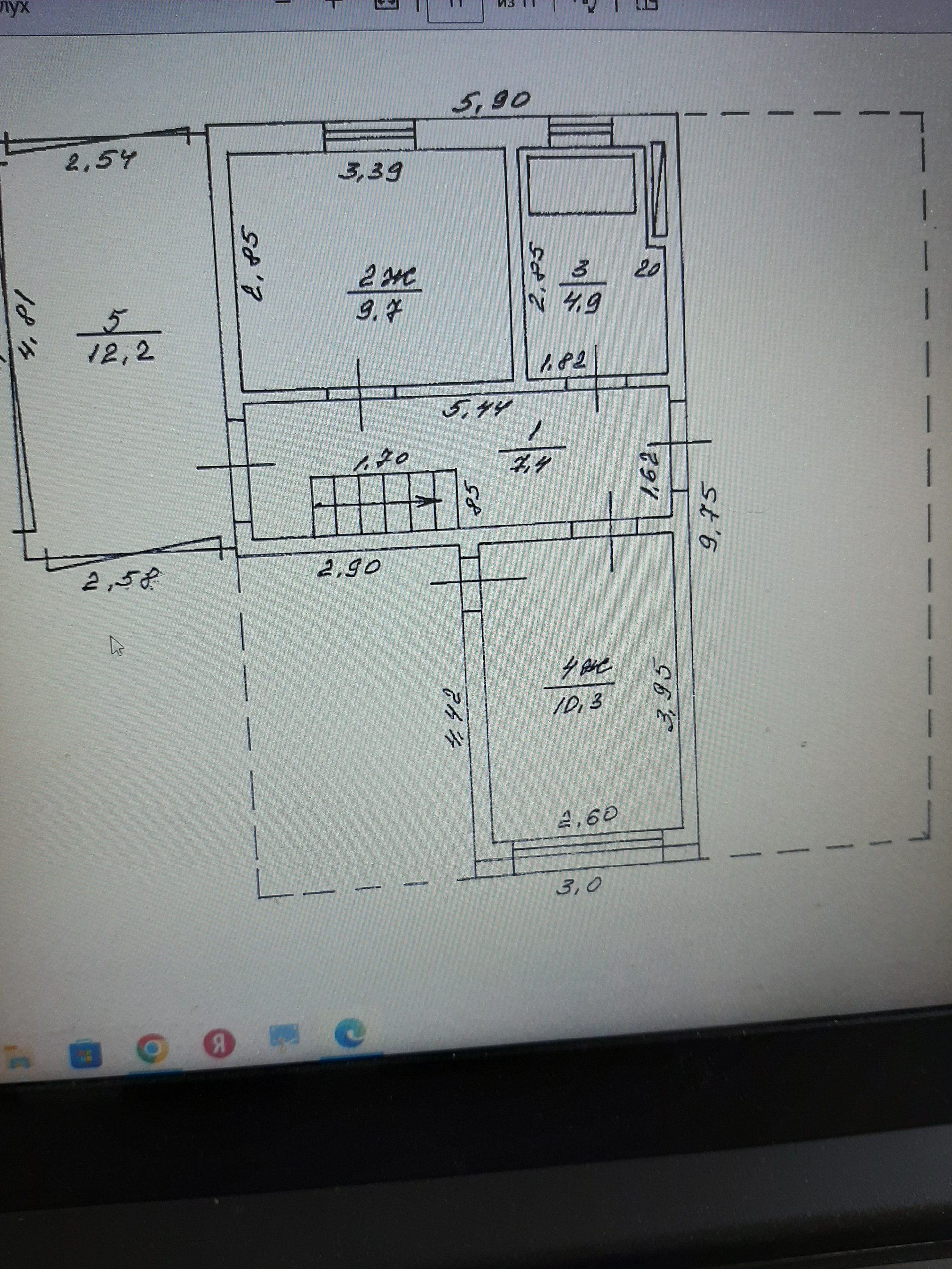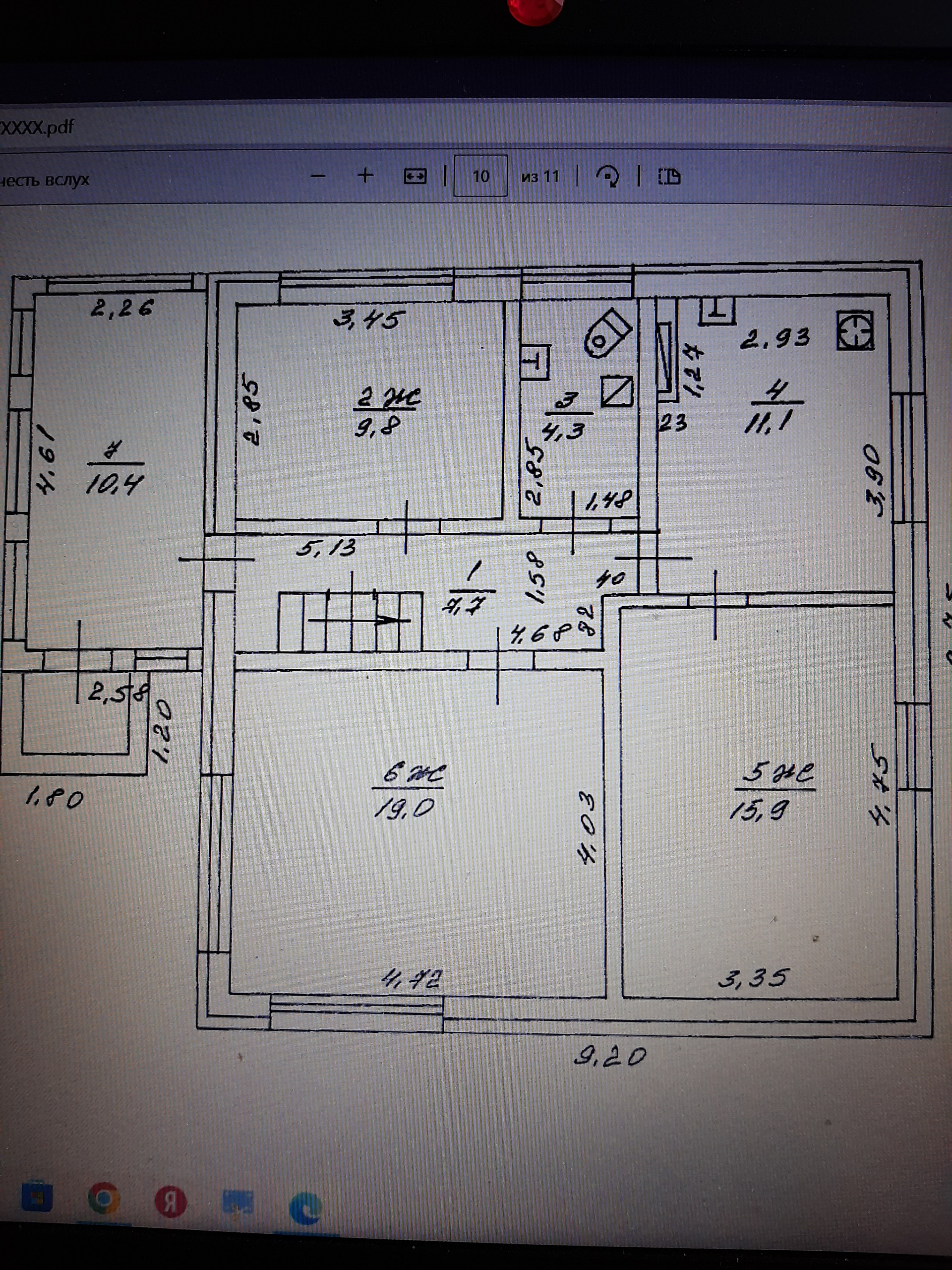 В доме пять комнат (1эт: 19,0+15,9+9,8, 2 эт: 10,3+9,7), кухня 11,1 кв.м, санузел,