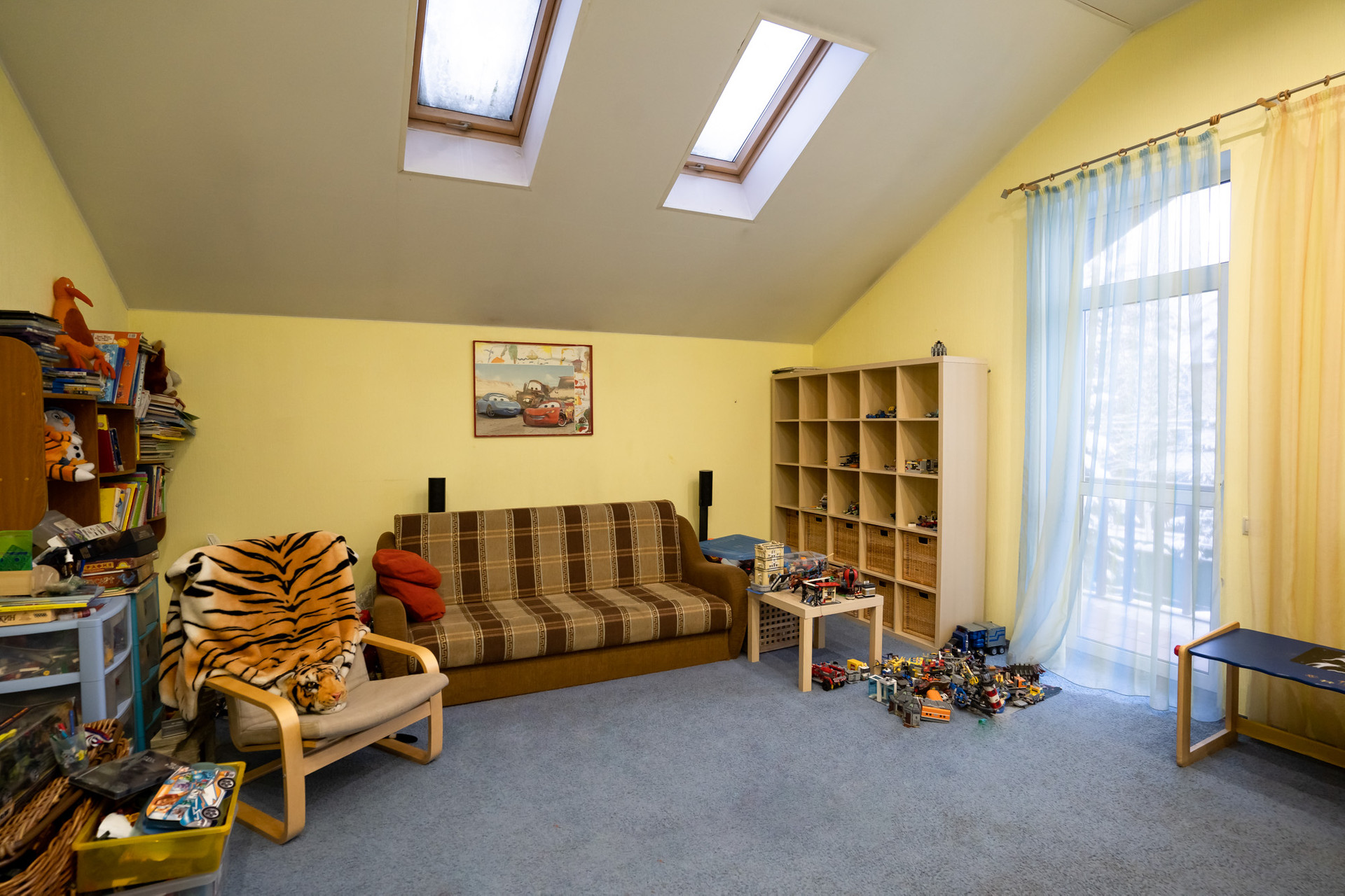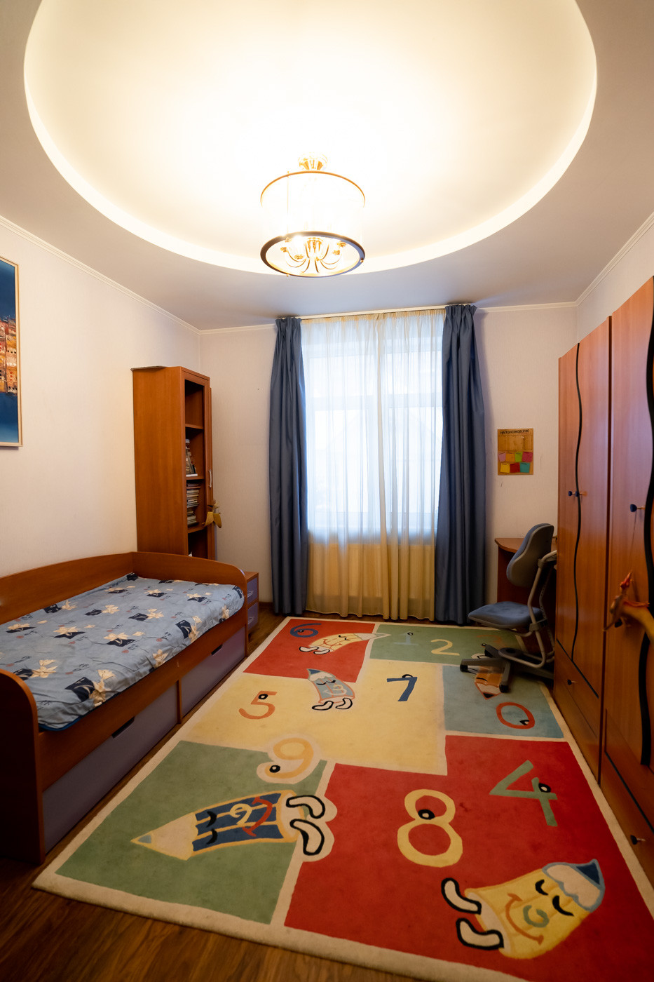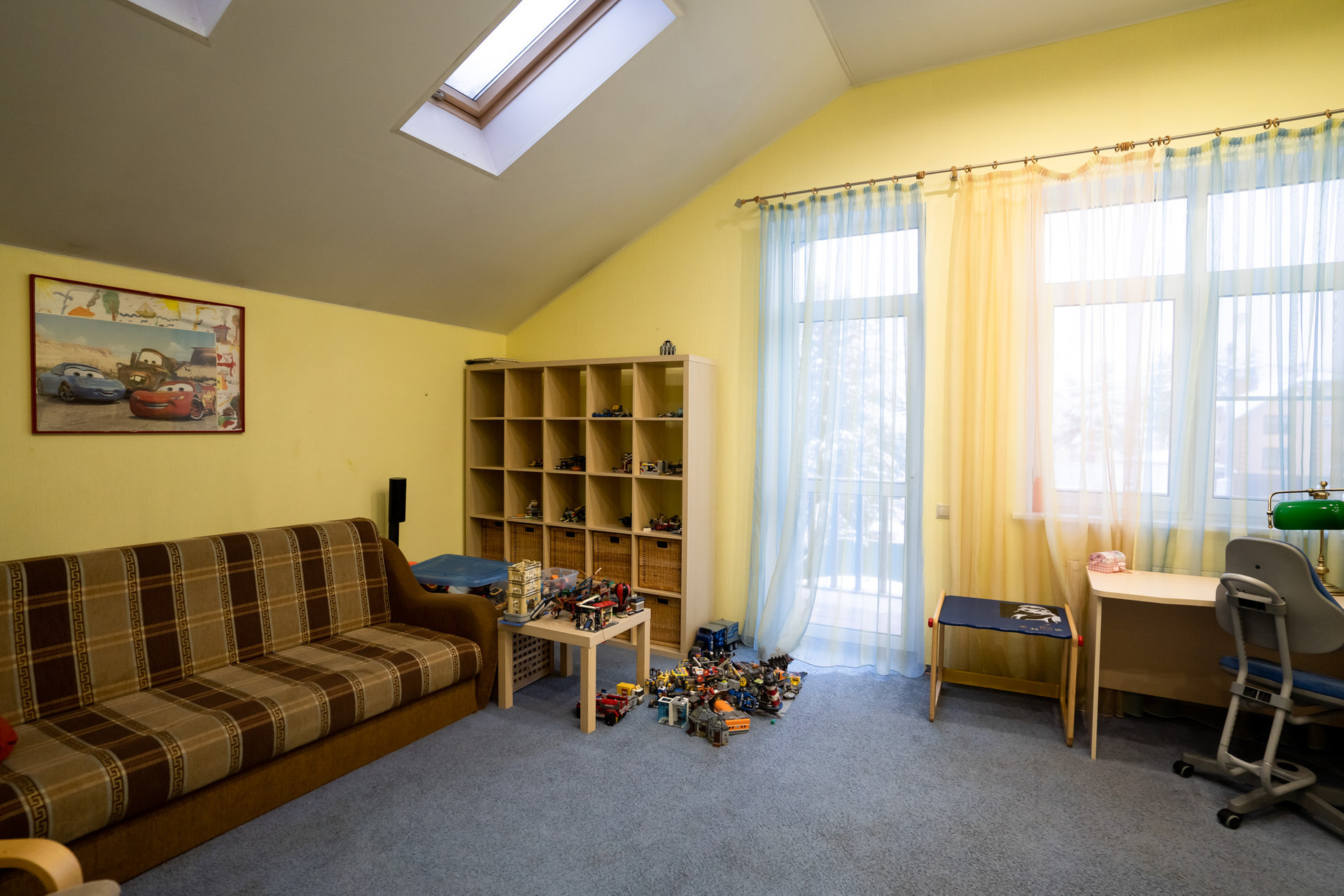 Количество комнат: кухня –гостиная, а также 7 изолированных комнат, из которых одна гостиная, одна спальная комната, три детских комнат, одна игровая комната, один кабинет.