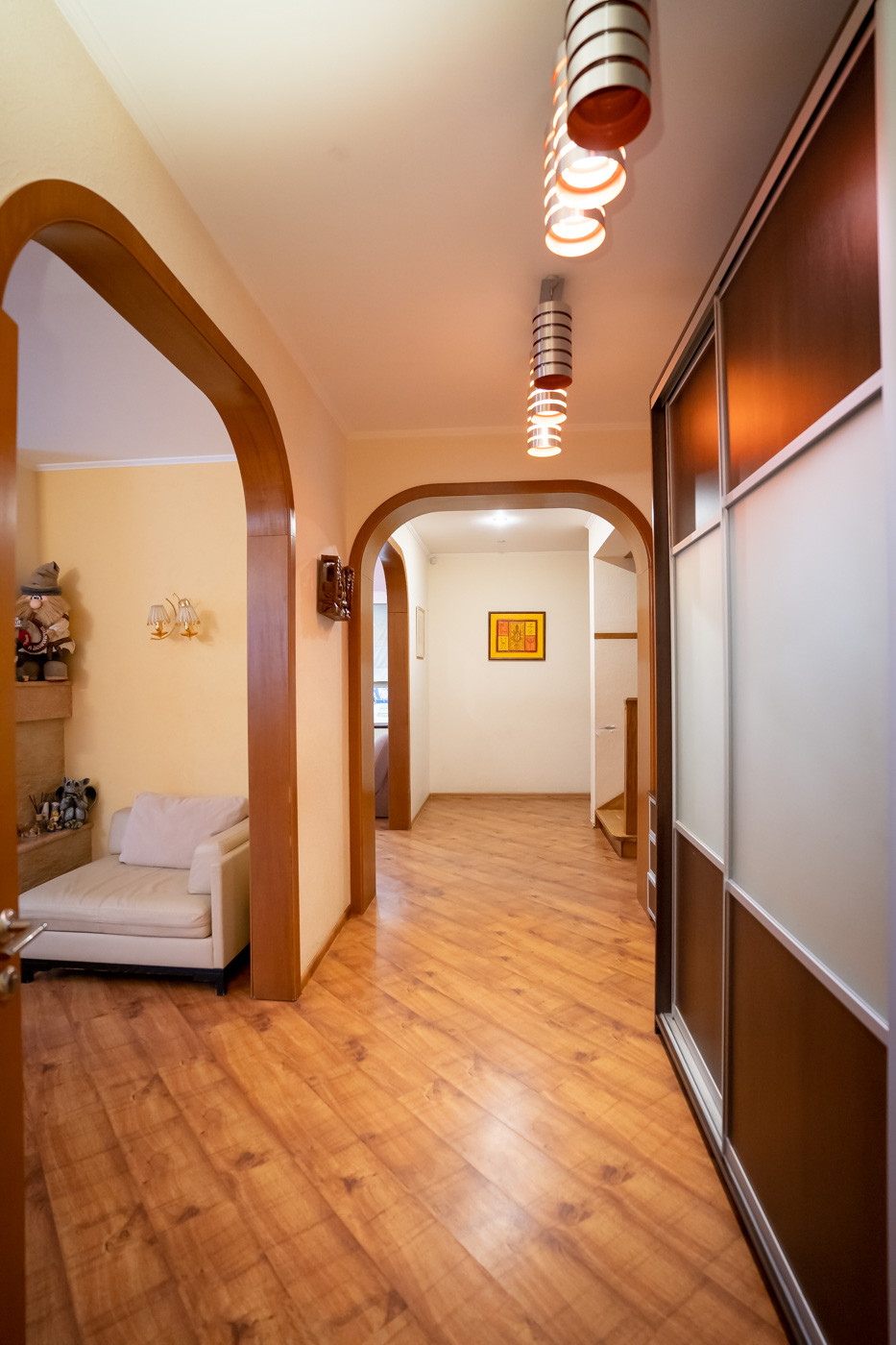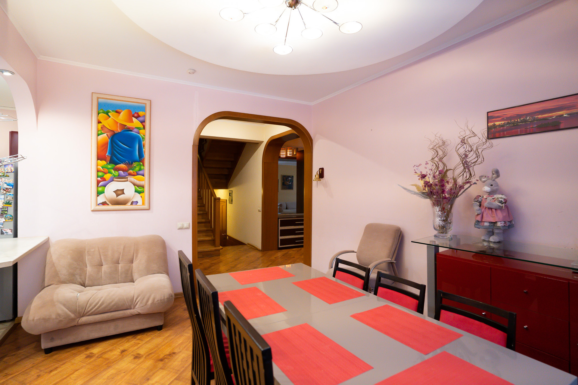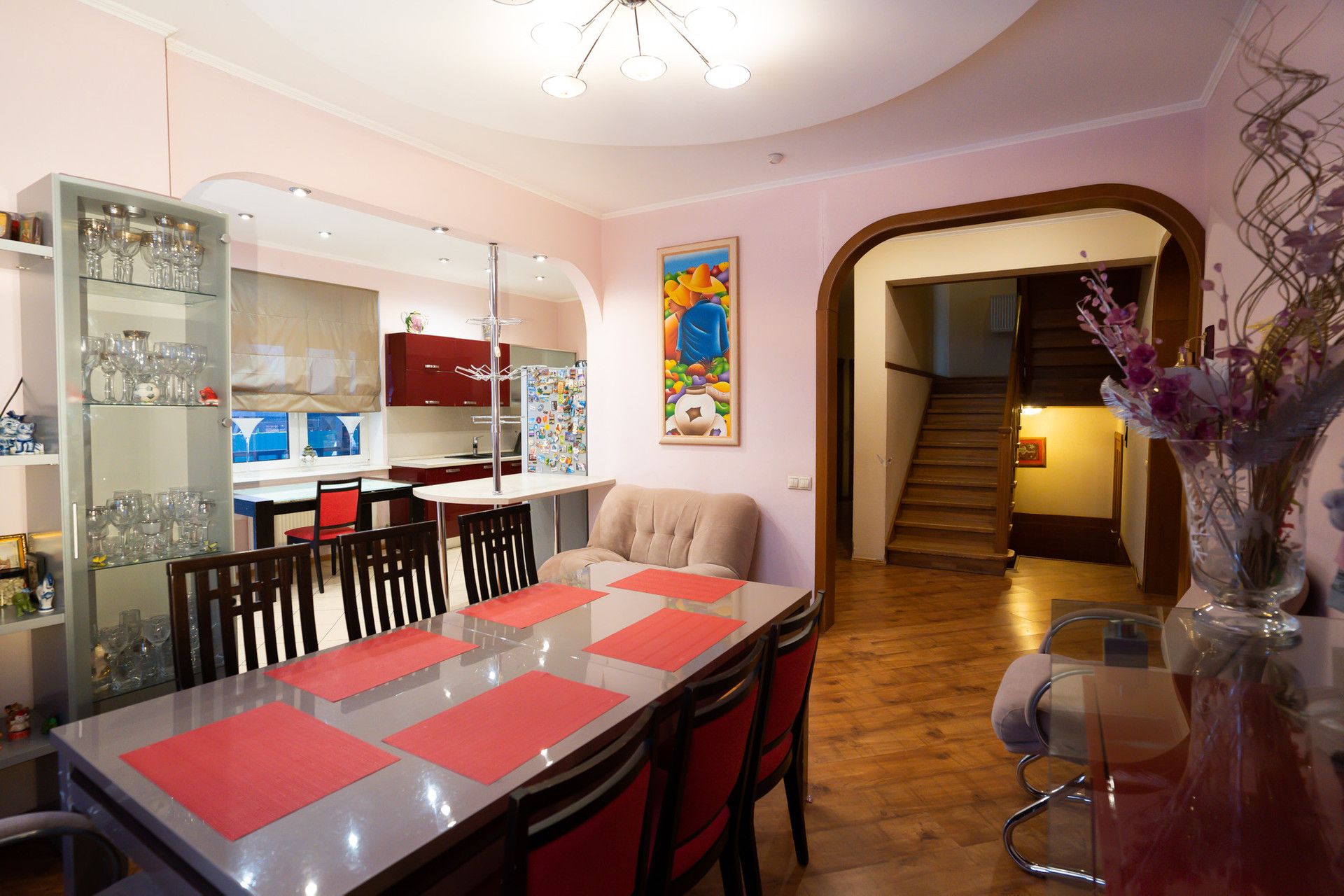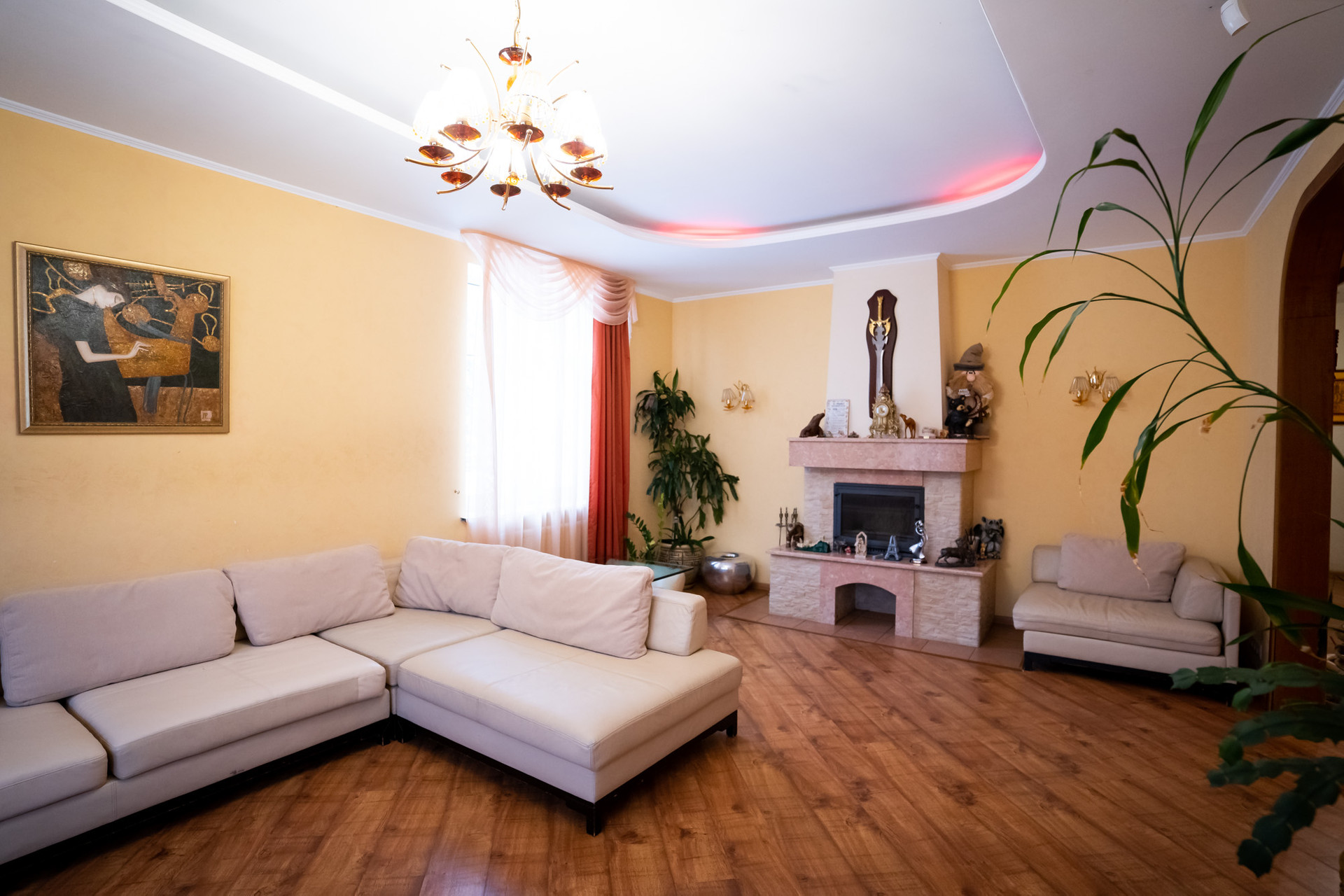 Количество комнат: кухня –гостиная, а также 7 изолированных комнат, из которых одна гостиная, одна спальная комната, три детских комнат, одна игровая комната, один кабинет.