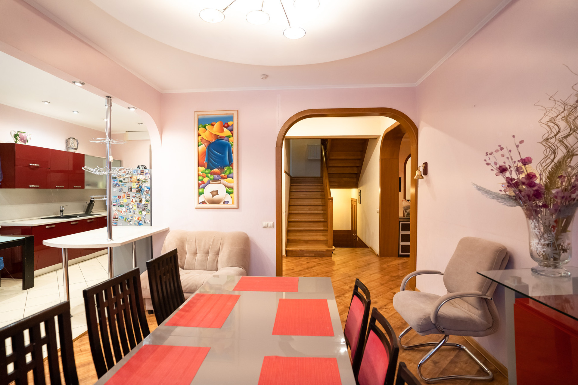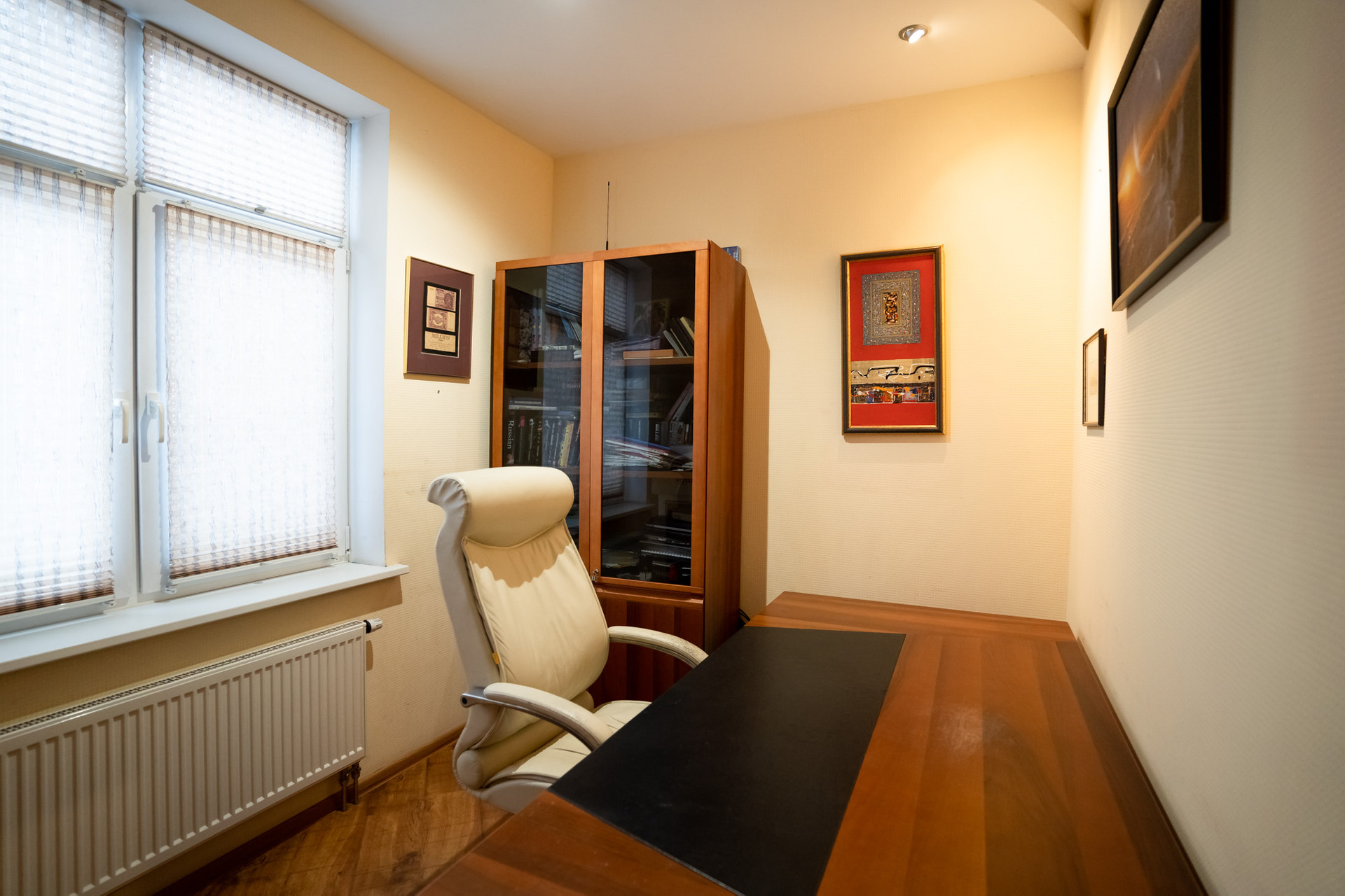 Светлая, просторная гостевая комната с камином, который согреет в зимнее время. Кухня -гостиная с вместительной кладовой комнатой и с выходом на террасу, обеденная зона. Бойлерная (котельная), сауна, кабинет, где всегда можно обдумать рабочие моменты. Гараж на две машины.