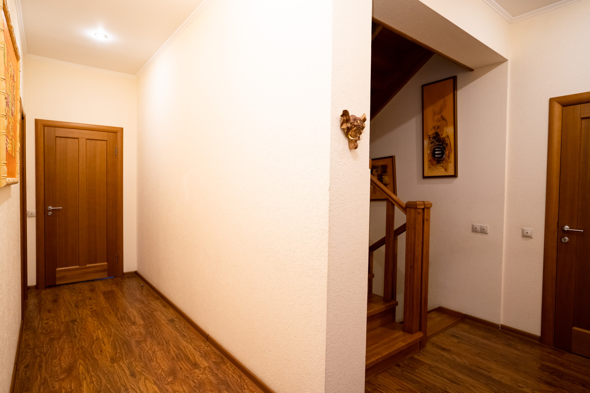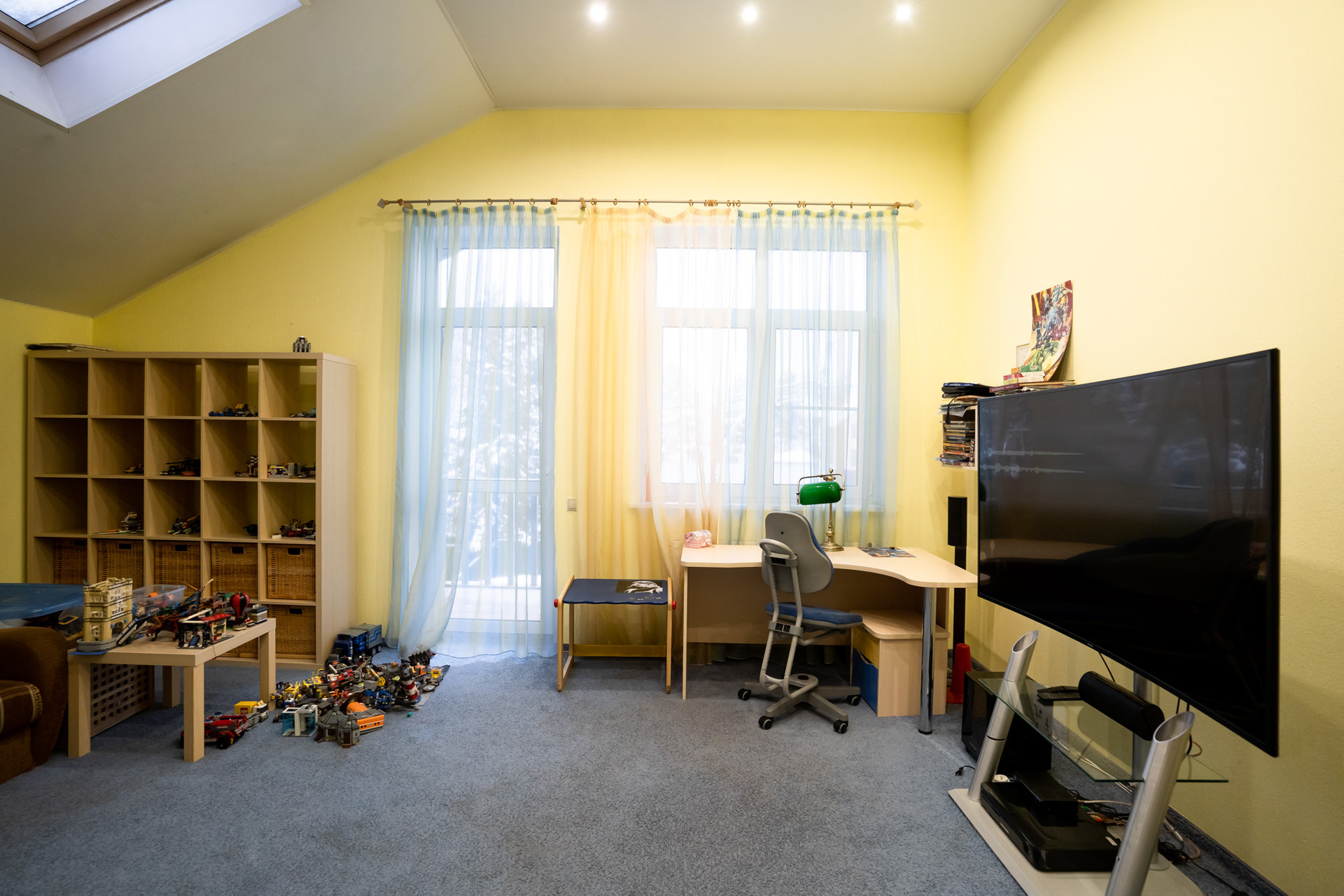 Между первым и вторым этажами расположена игровая комната с выходом на балкон.