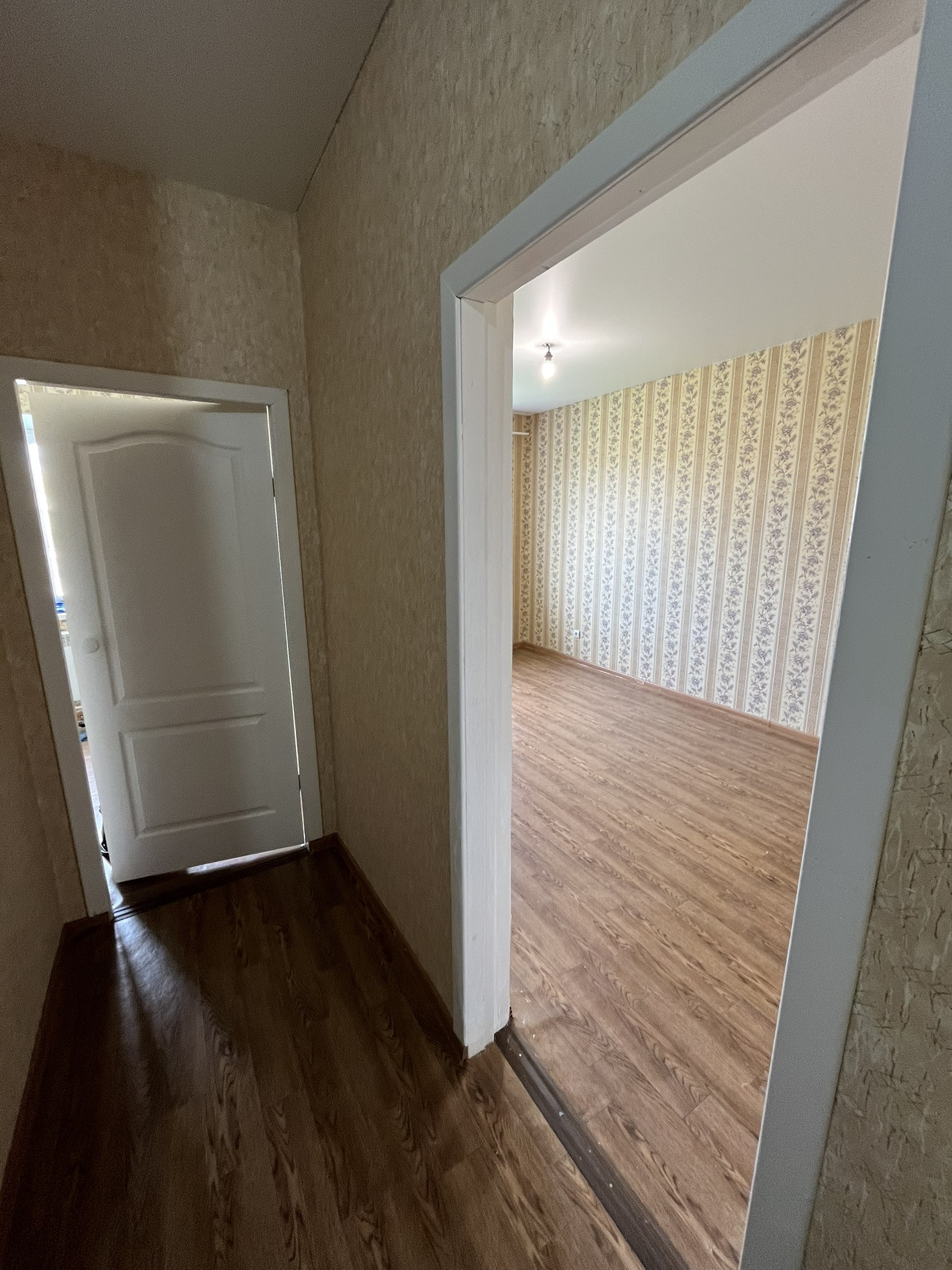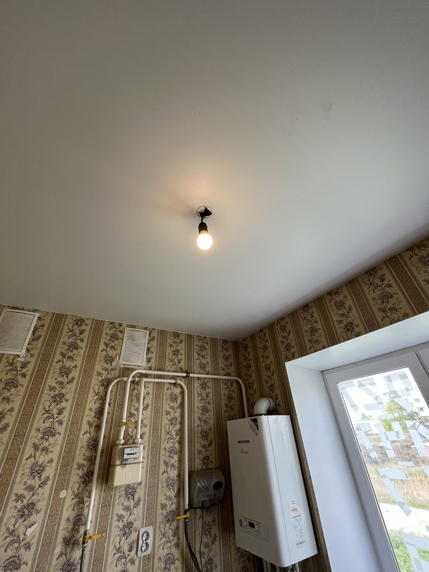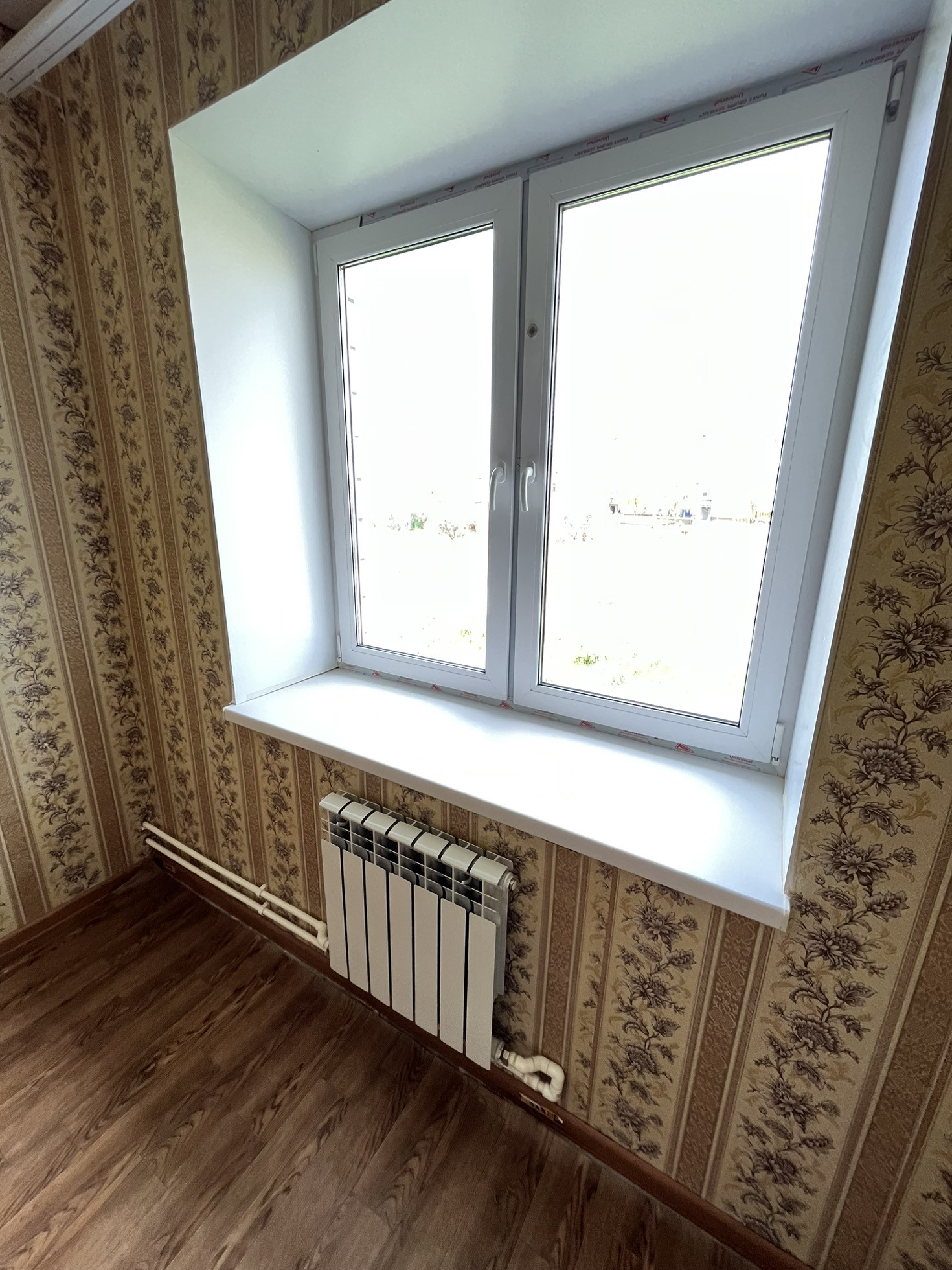 Два пластиковых окна с полностью работающей фурнитурой. Напольное покрытие линолеум. Во всей квартире натяжные потолки.