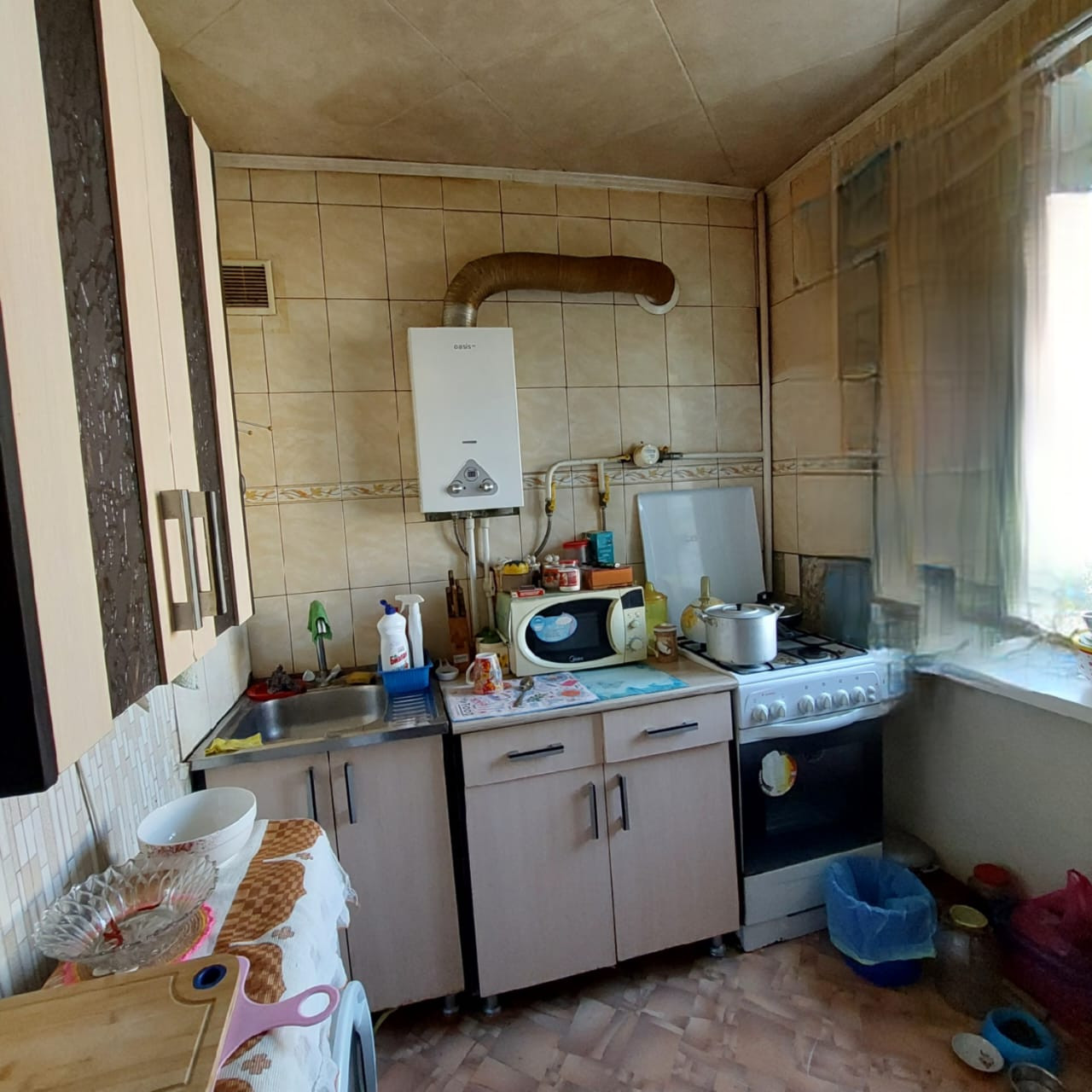 Продается двухкомнатная квартира общей площадью 44,7 кв.м кухня 6 кв.м на третьем этаже пятиэтажного дома. не угловая, комнаты смежные. Межкомнатные двери новые. Окна и балкон металлопластиковые. Натяжные потолки. Пол линолеум. Санузел раздельный. В квартире остается вся мебель, бытовая техника по договоренности. Горячая вода - газовая колонка. Установлены новые приборы учета на газ, электроэнергию и воду. Рядом два детских сада, школа, магазины, поликлиника, остановка общественного транспорта. Один собственник.