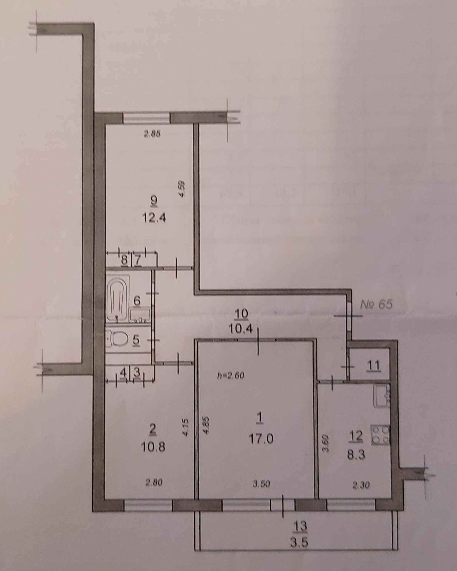 Общая площадь 65.3 м2
