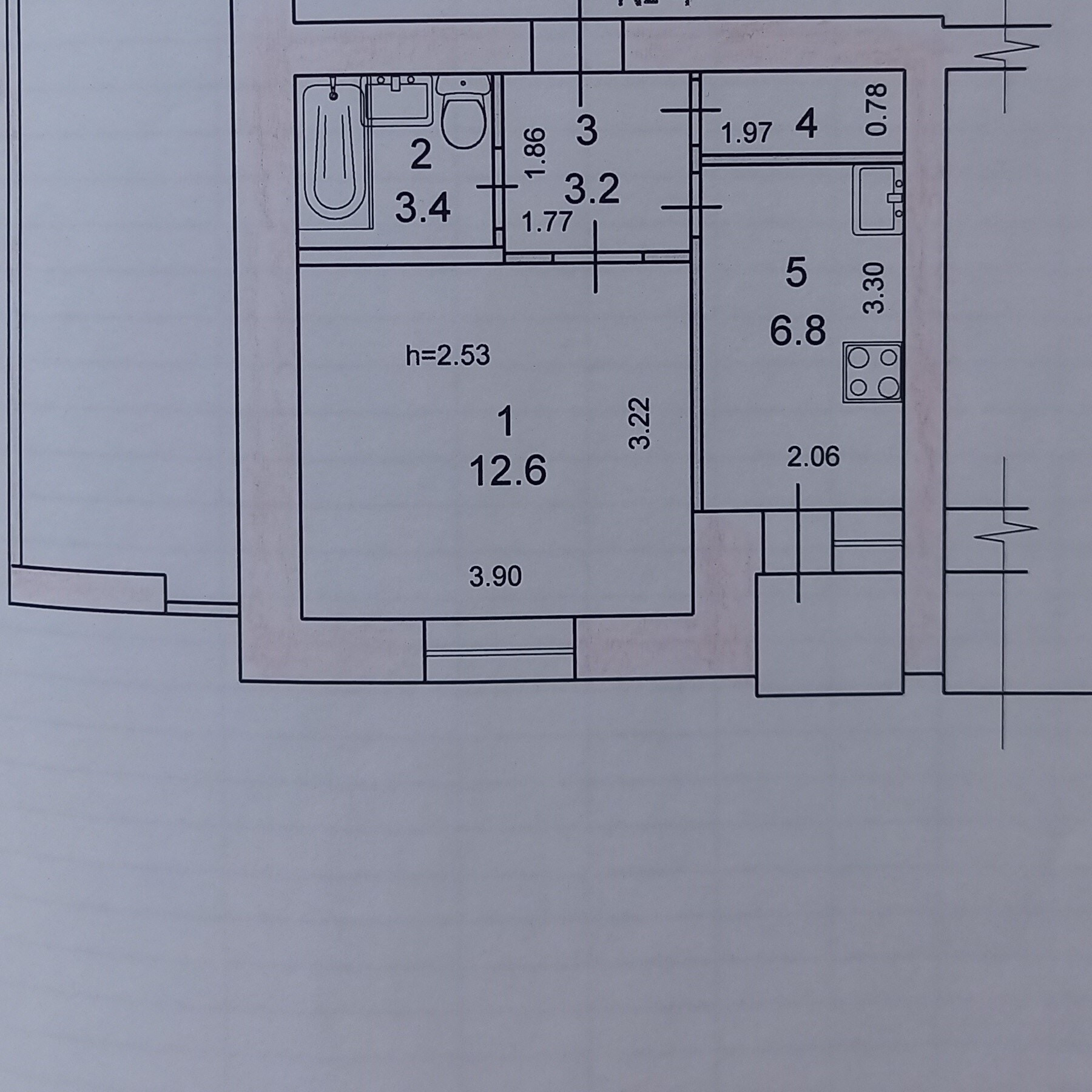 Площадь кухни 6.8 м2