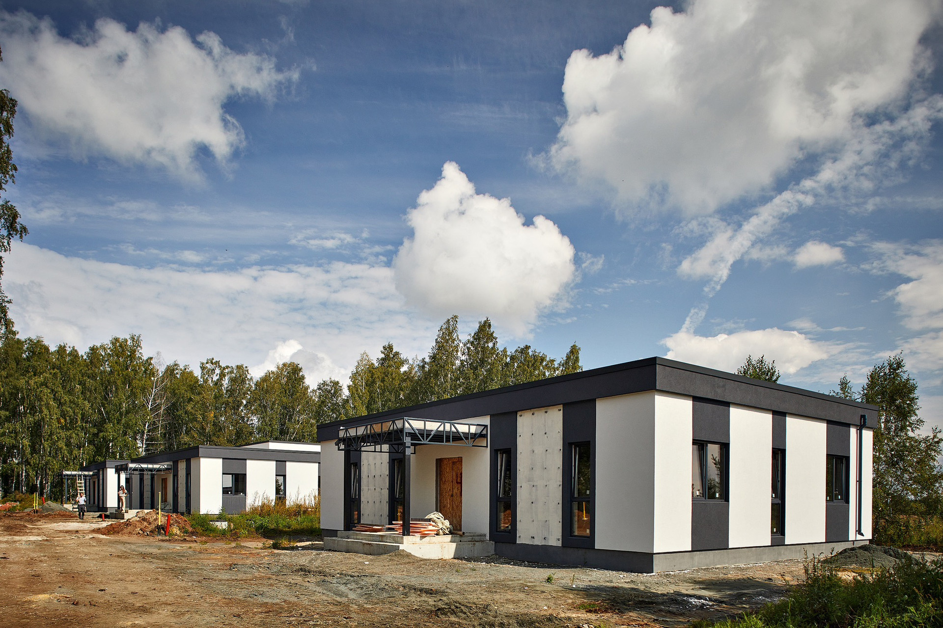 Одноэтажные коттеджи с плоской крышей и строгими геометрическими формами.