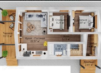 Общая площадь: 105 м2