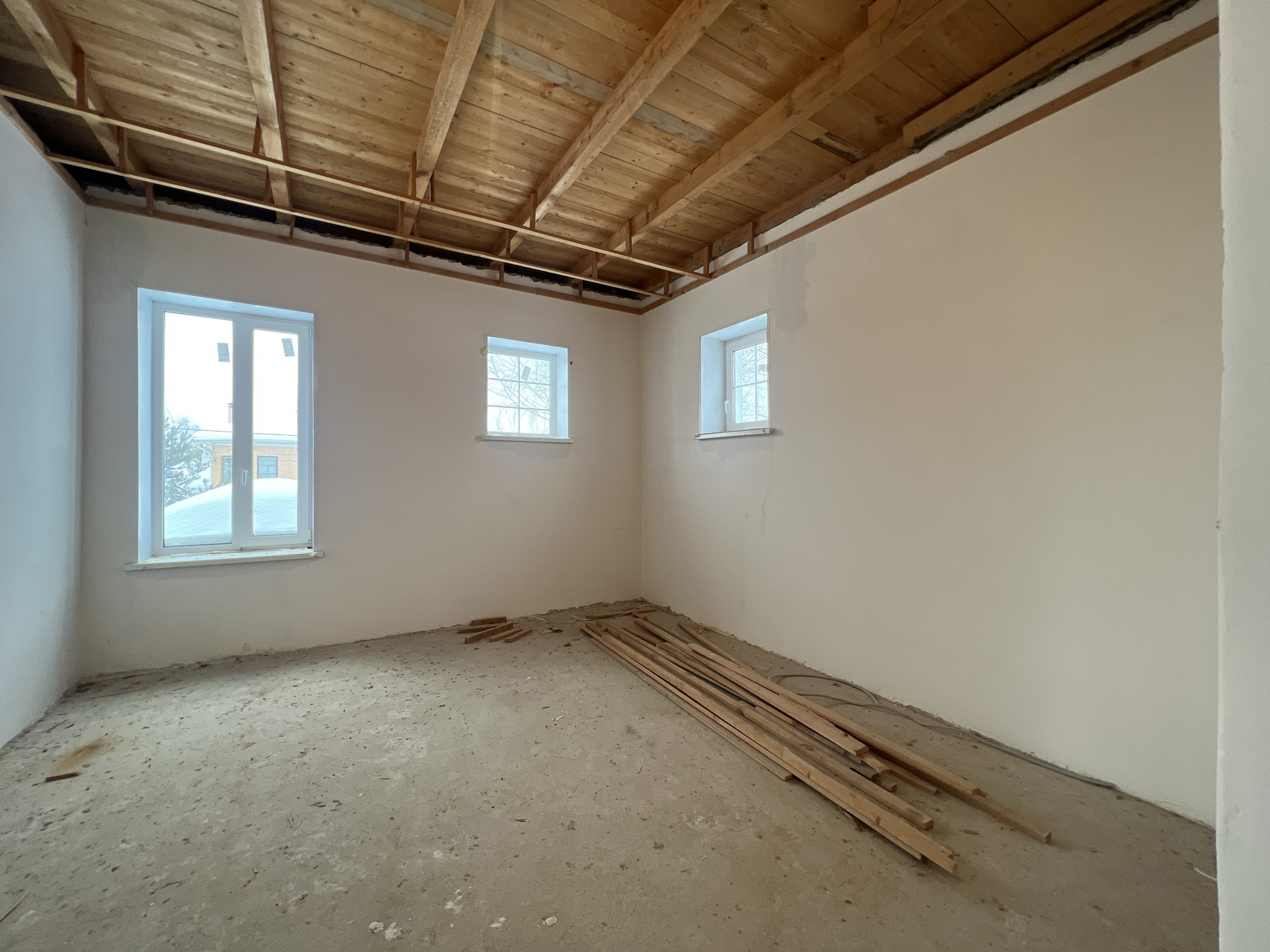 Материал стен– газобетонные блоки. Перекрытия монолитные. 5 спален и 2 санузла. Стены выровнены по маякам, оштукатурены и ошпаклеваны, потолки покрашены. Окна в английском стиле с двойными стеклопакетами. Потолки 3.10 м. В каждой комнате не менее чем по 2 окна.