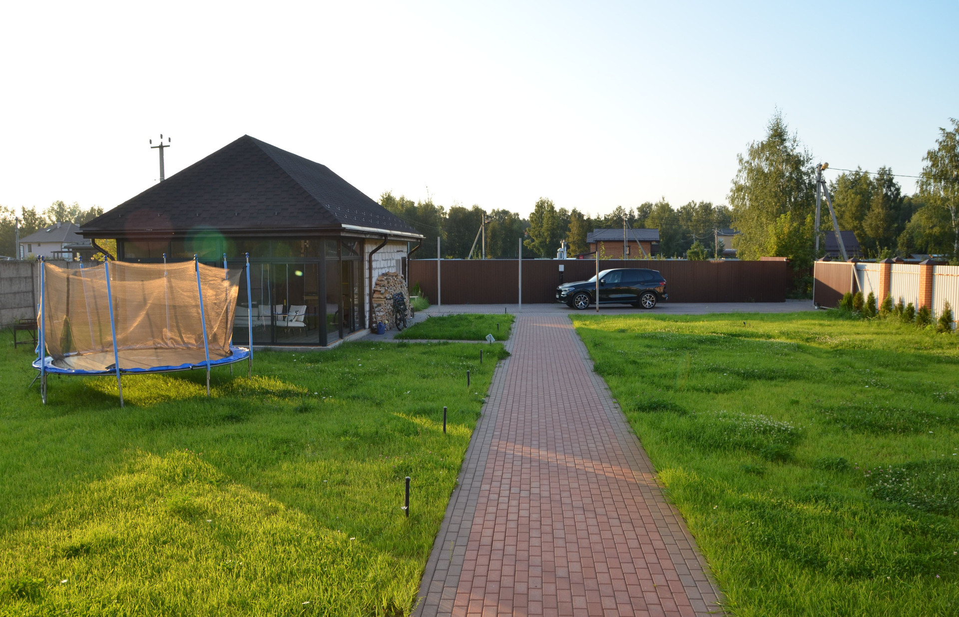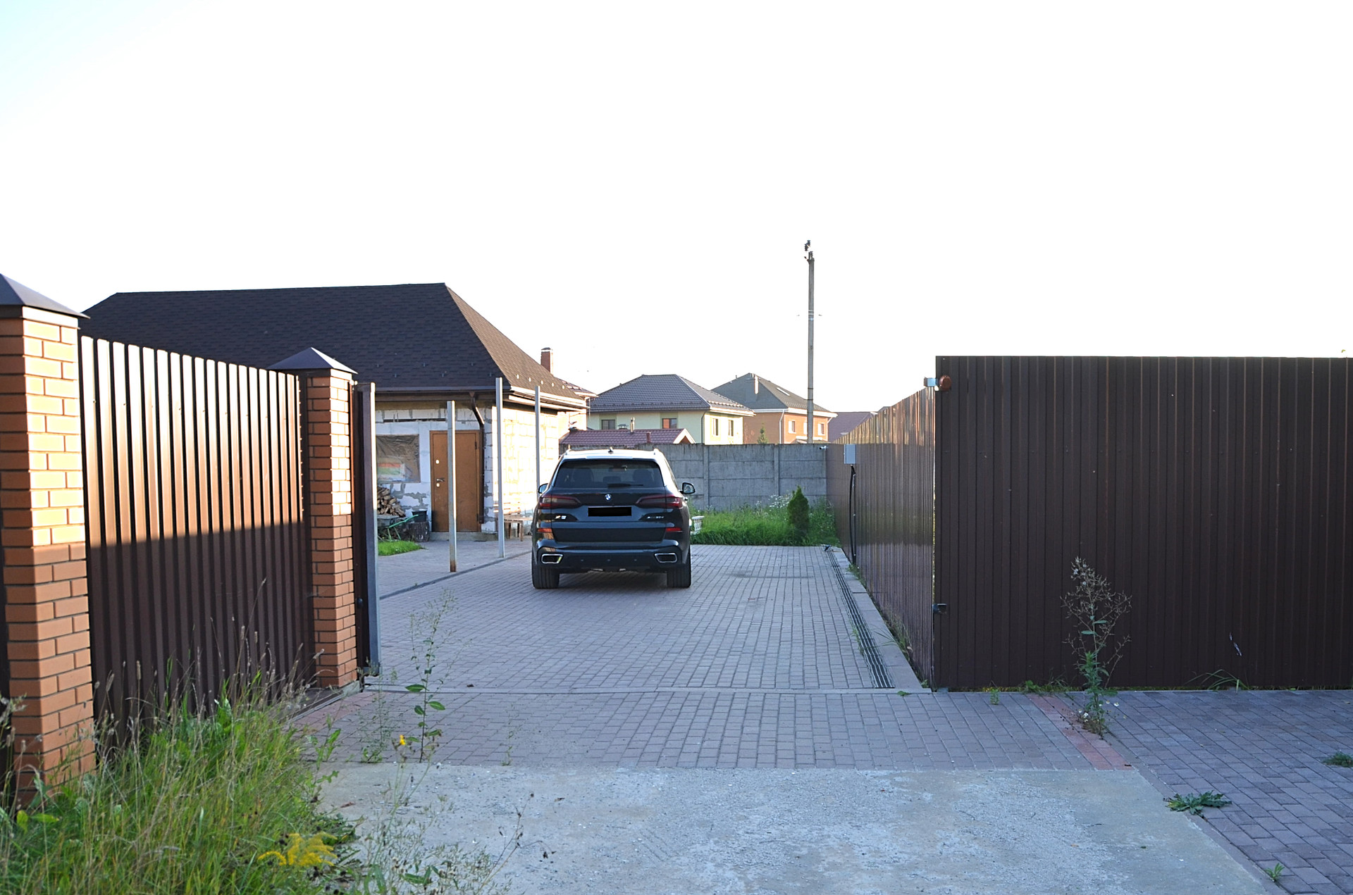 Проезд на территорию дачного посёлка и на участок через автоматические откатные ворота, всё под видеонаблюдением.