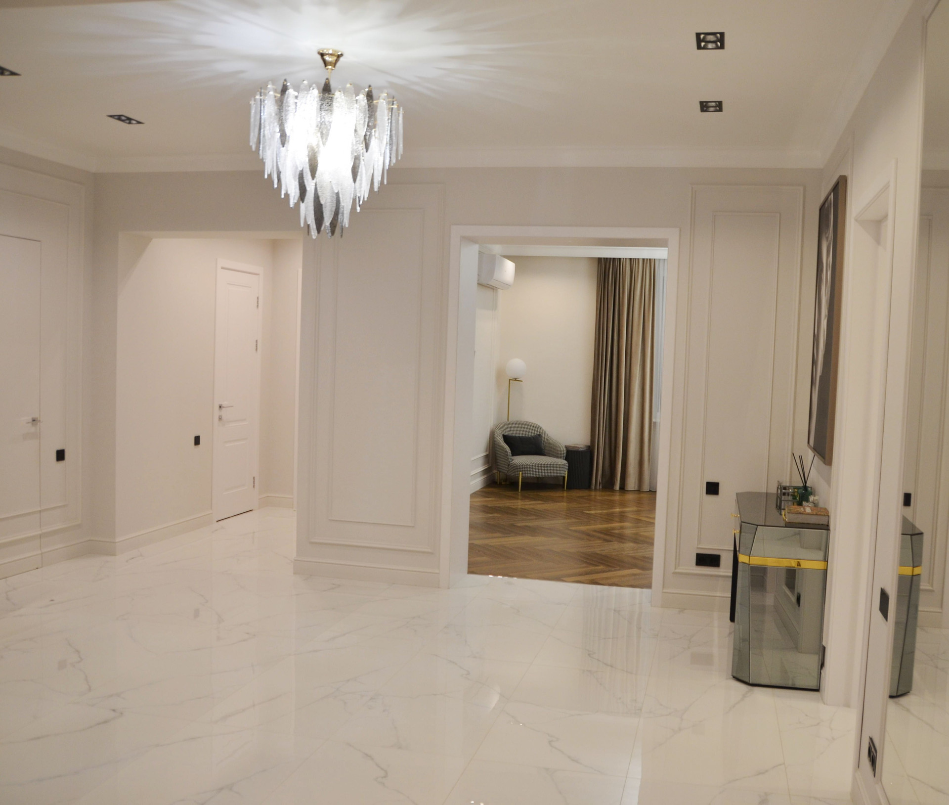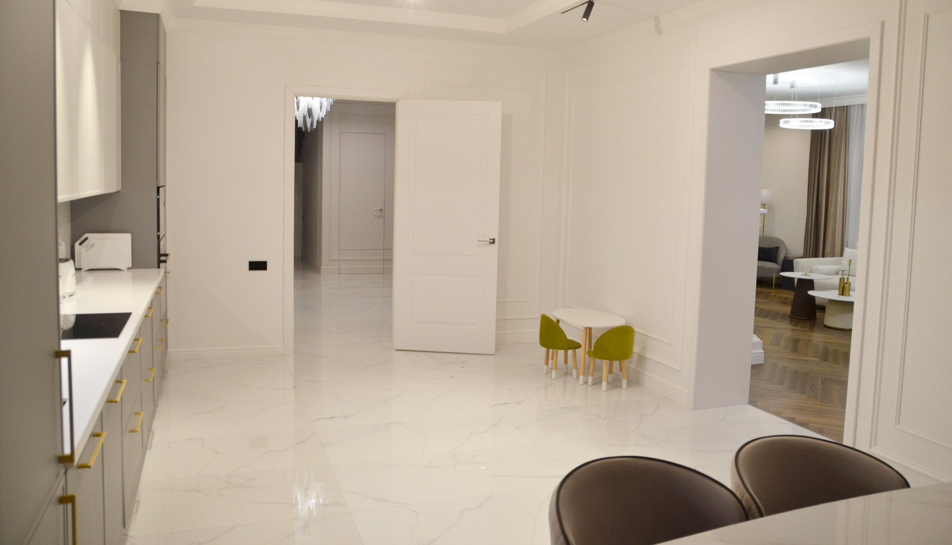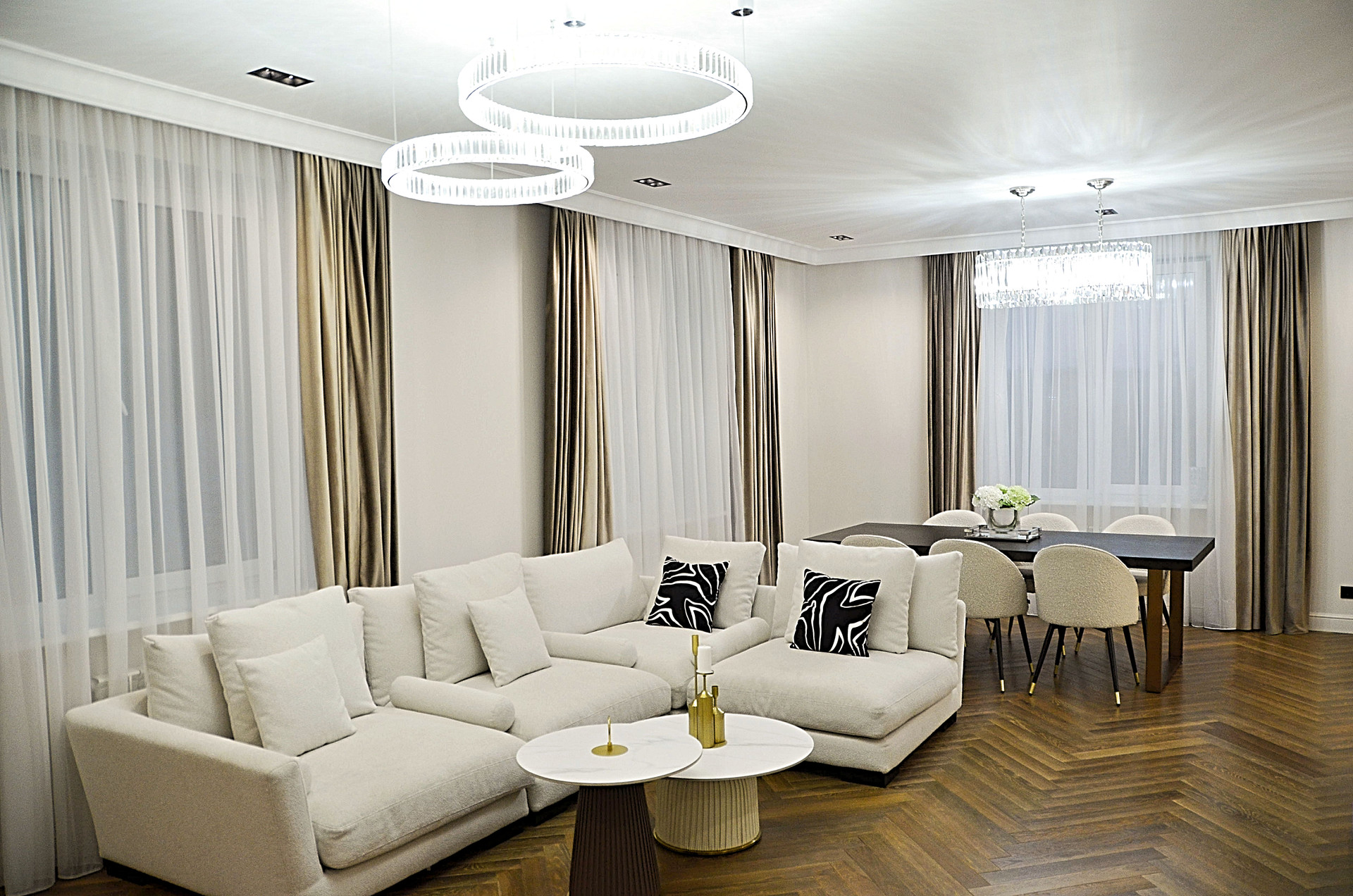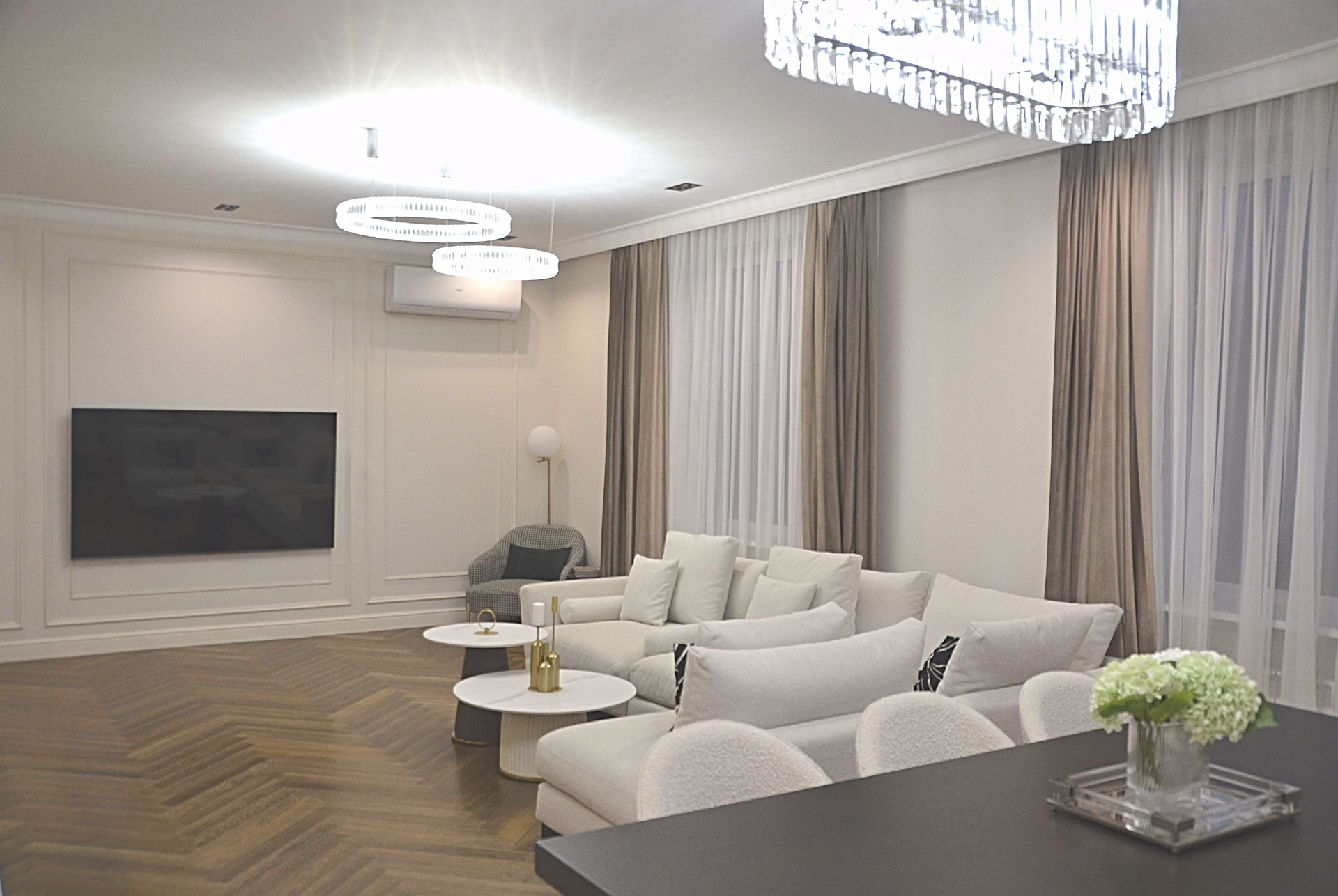 1 этаж - 186 кв.м., холл 36, гостинная 42,5, кухня 28, комнаты 27 и 19, бойлерная 12, два санузла. Высота 3.10.