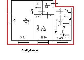 Общая площадь: 41.4 м2