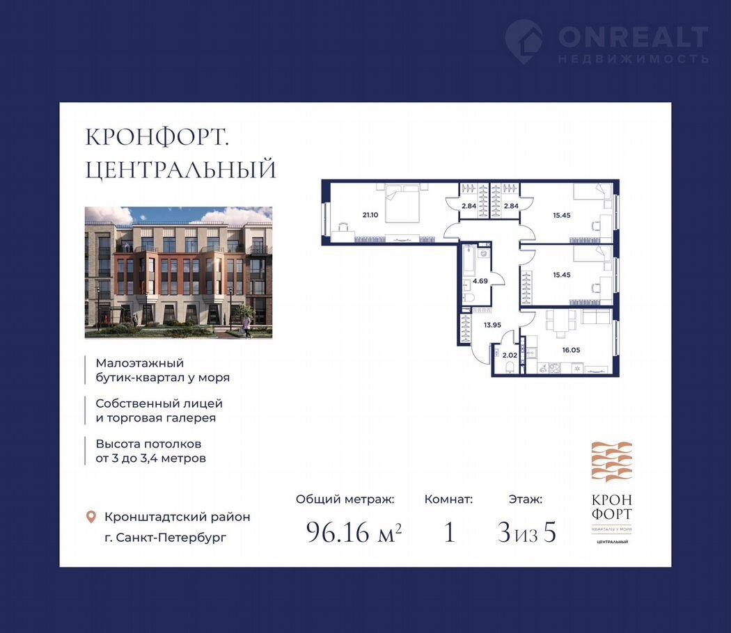 «Кронфорт.Центральный» — малоэтажный бутик-квартал, формирующий образ жизни на морском побережье в окружении актуальной архитектуры и современных инфраструктурных решений для жизни и досуга.