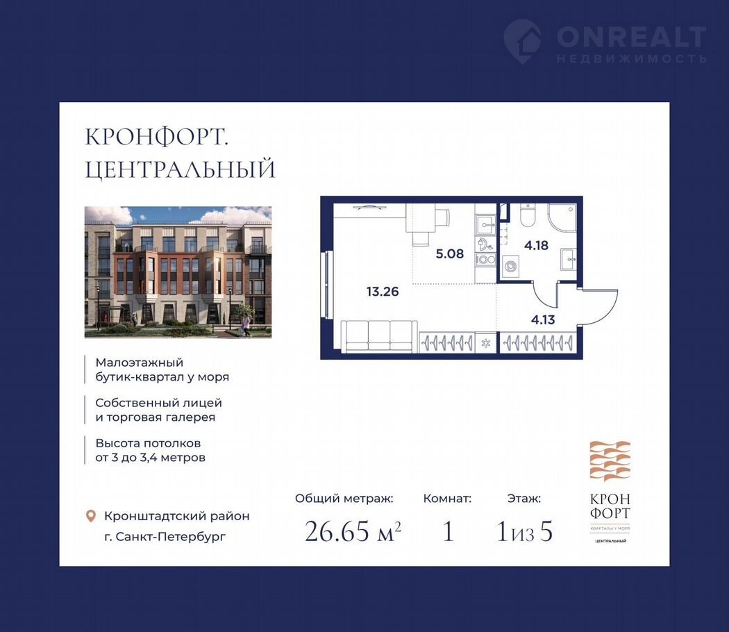 «Кронфорт.Центральный» — малоэтажный бутик-квартал, формирующий образ жизни на морском побережье в окружении актуальной архитектуры и современных инфраструктурных решений для жизни и досуга.