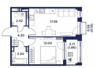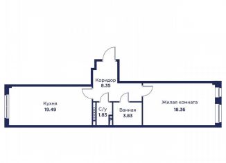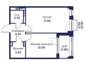 Однокомнатная квартира на продажу, 43.4 м2