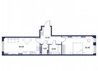 Однокомнатная квартира на продажу, 52.6 м2