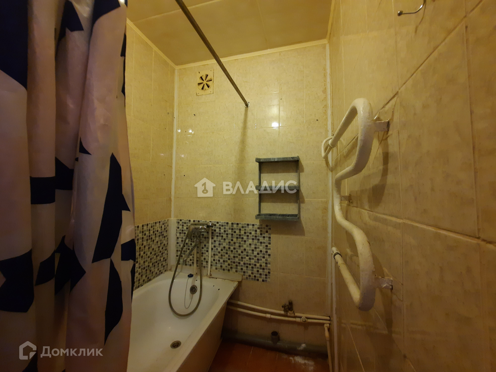 Квартира с обычным ремонтом. Ванна сделана плиткой. На кухне установлен кухонный гарнитур.