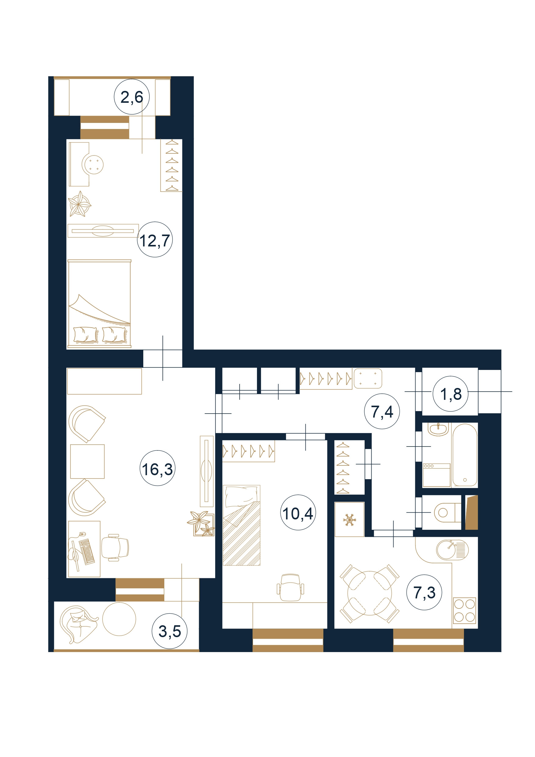 Высота потолков 2.6 м