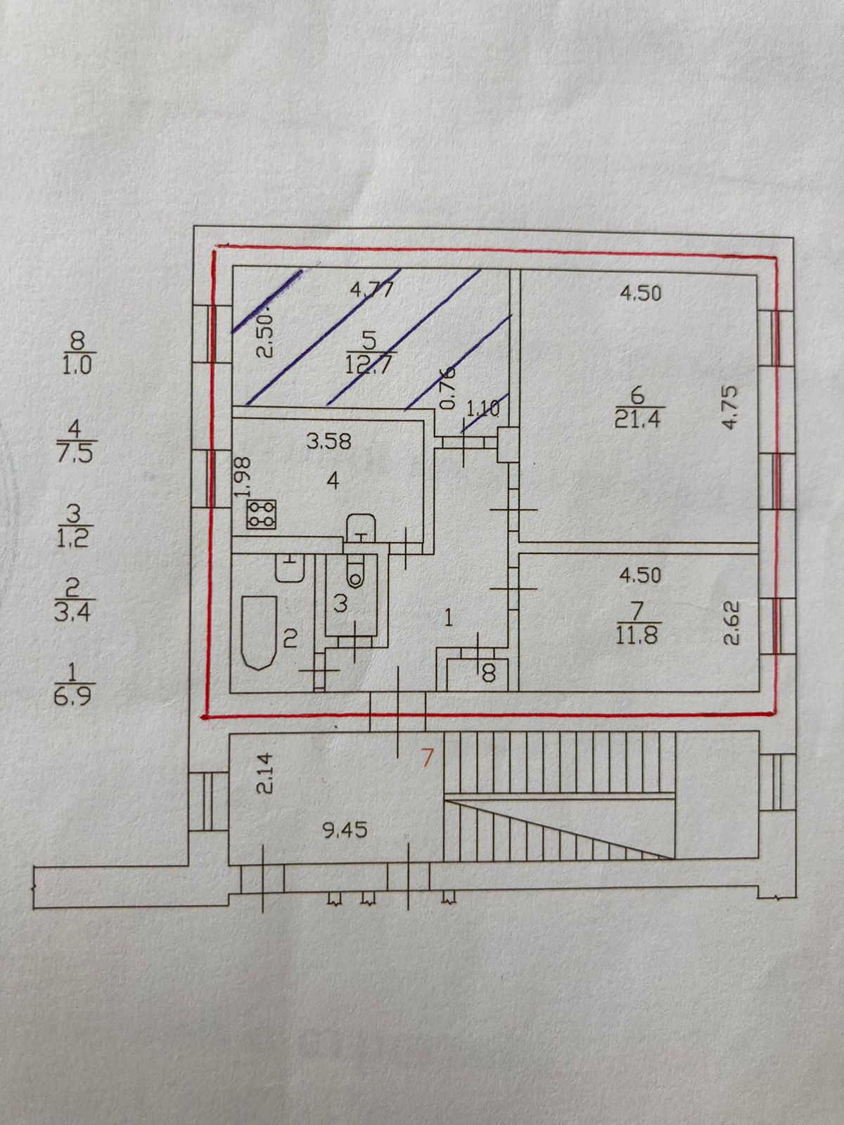 Площадь кухни 7.5 м2