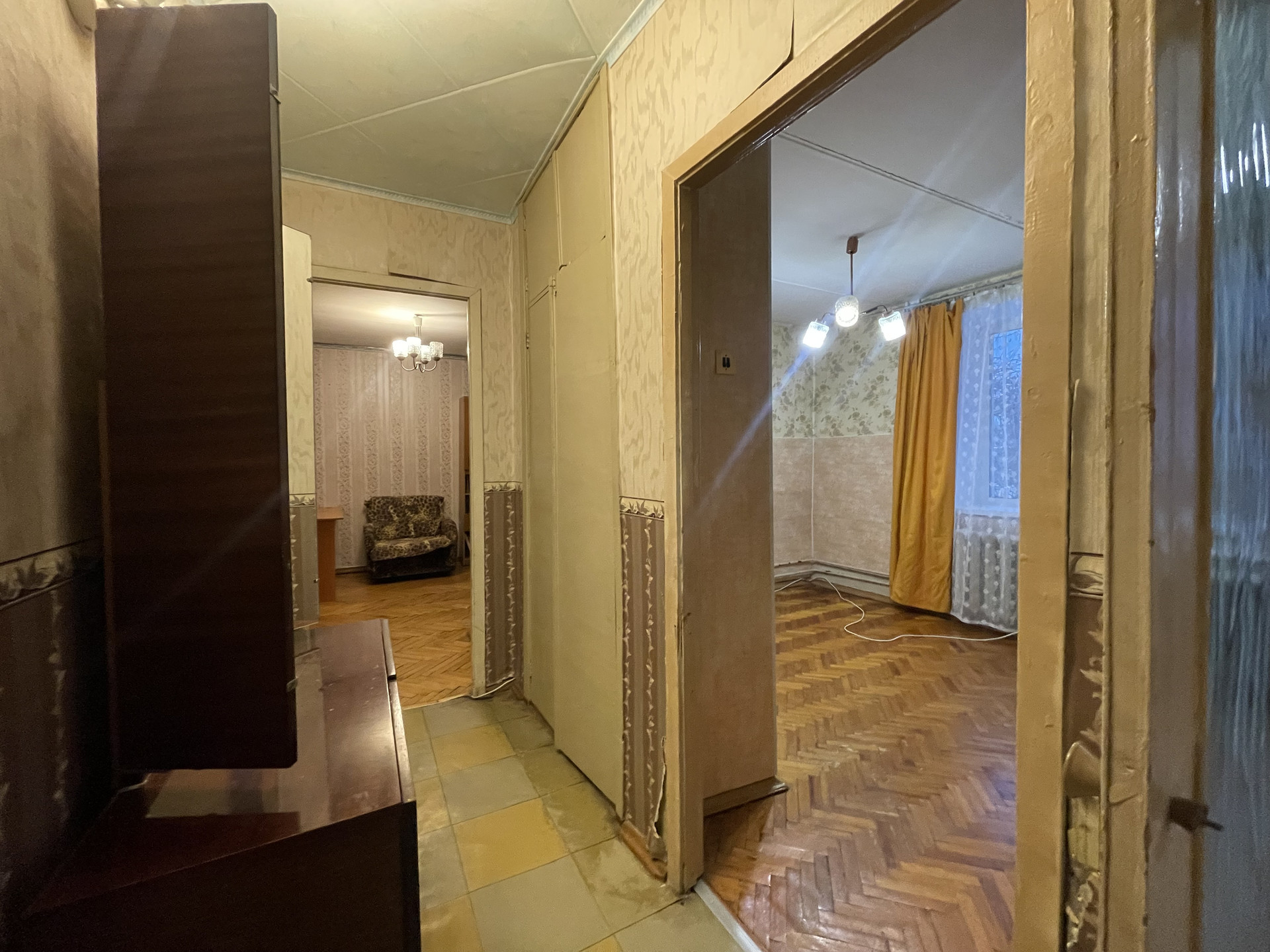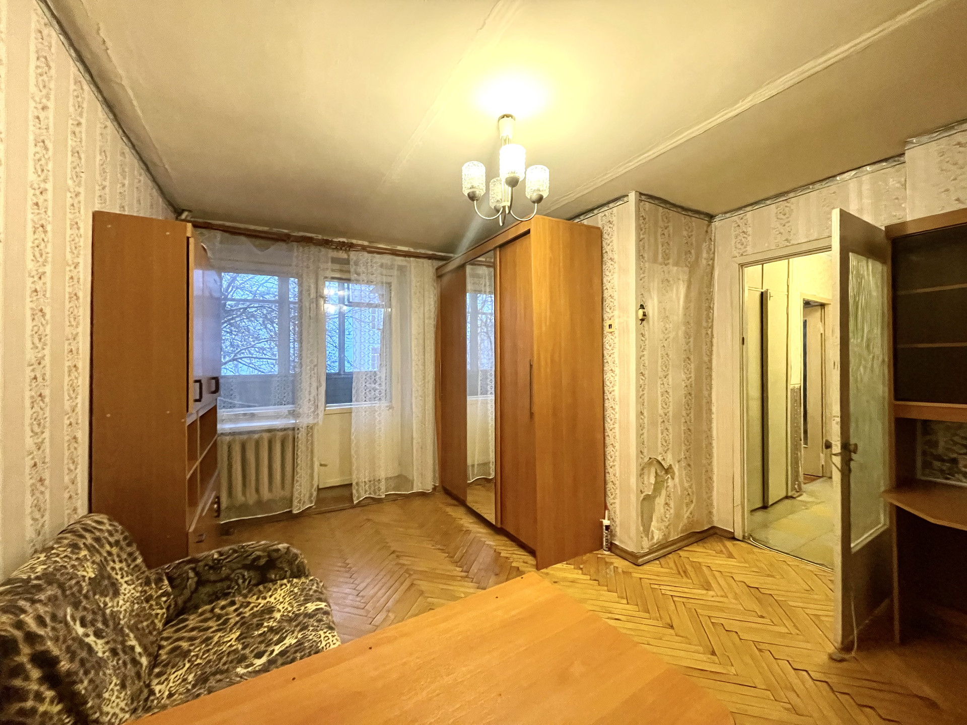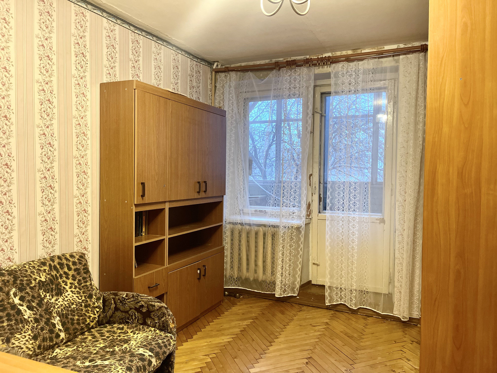 О квартире: квартира расположена на 2 этаже 5 этажного дома, вид из окон во двор, комнаты правильной формы, на кухне и в одной из комнат установлены стеклопакеты, в маленькой комнате имеется встроенный шкаф, также встроенный шкаф имеется в коридоре, застекленный балкон, в комнатах на полу паркет, санузел раздельный, установлены водосчетчики, входная дверь двойная.
