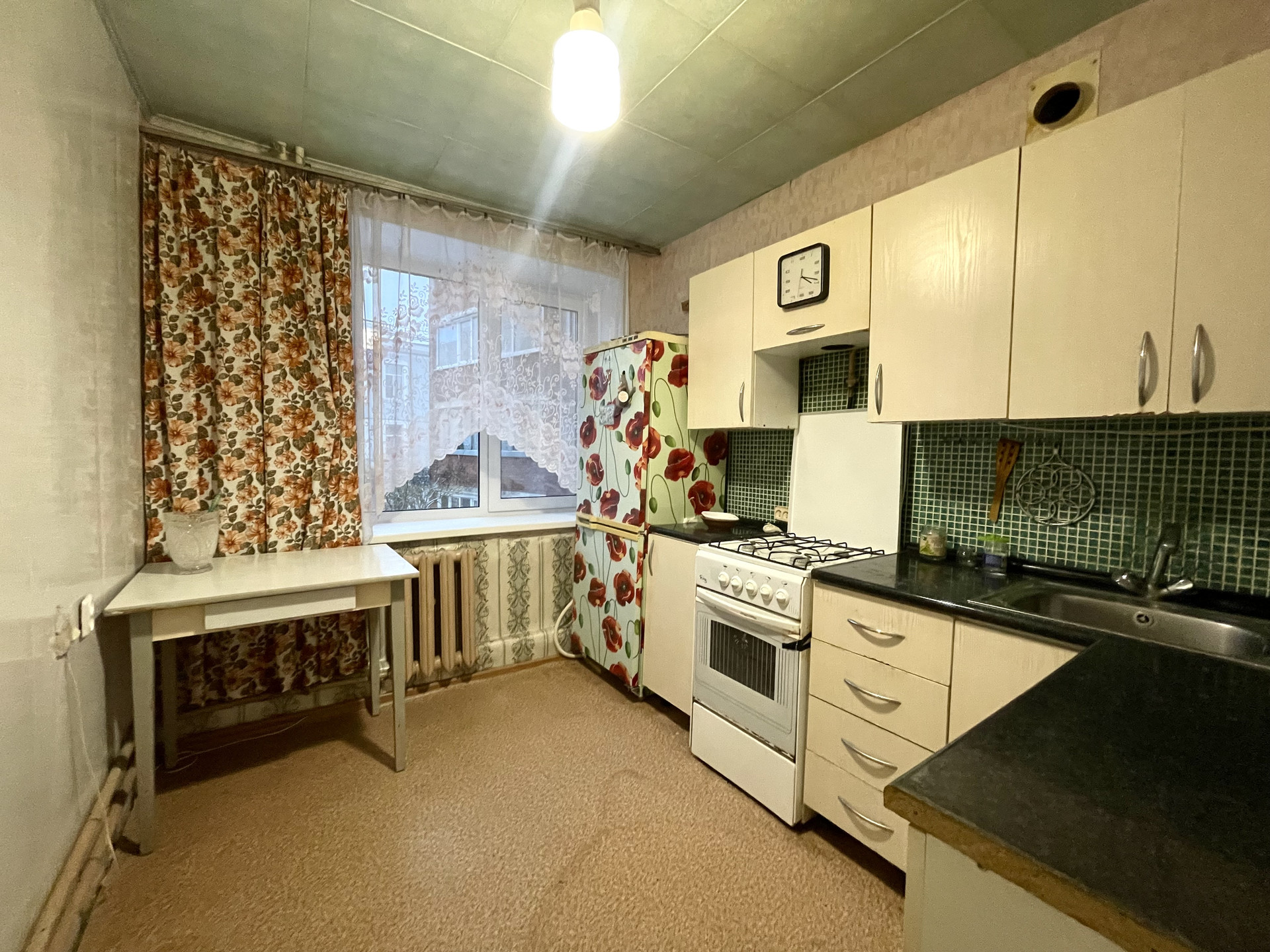 О доме: год постройки 1977 год, кирпичный, железобетонные перекрытия, водоснабжение и газоснабжение - централизованное.