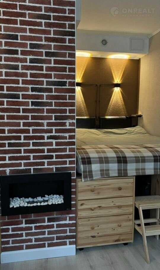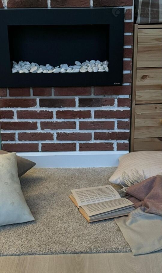 Изюминка квартиры - стильный камин, который можно зажечь и провести уютный вечер за чтением книги или просмотром любимого фильма.