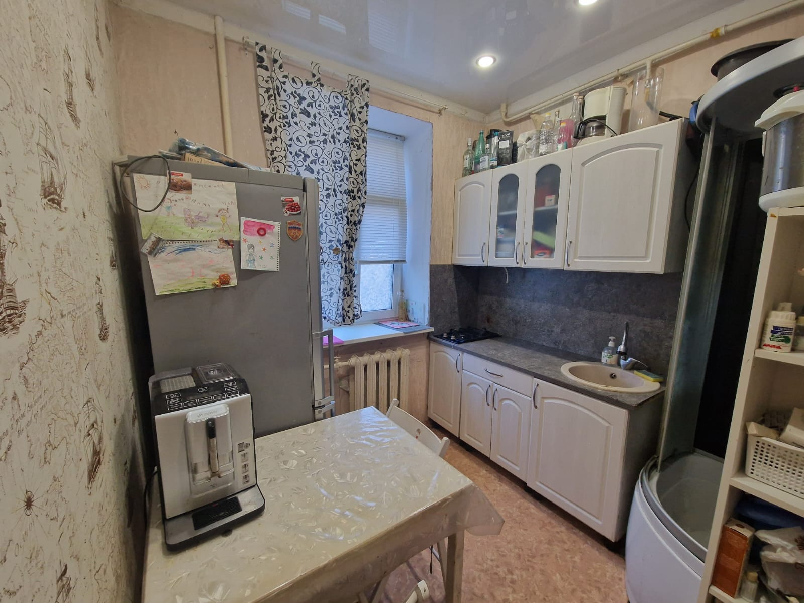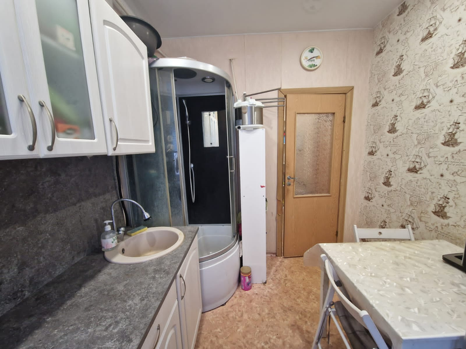 * Новым собственникам остается кухня и душевая кабина.
