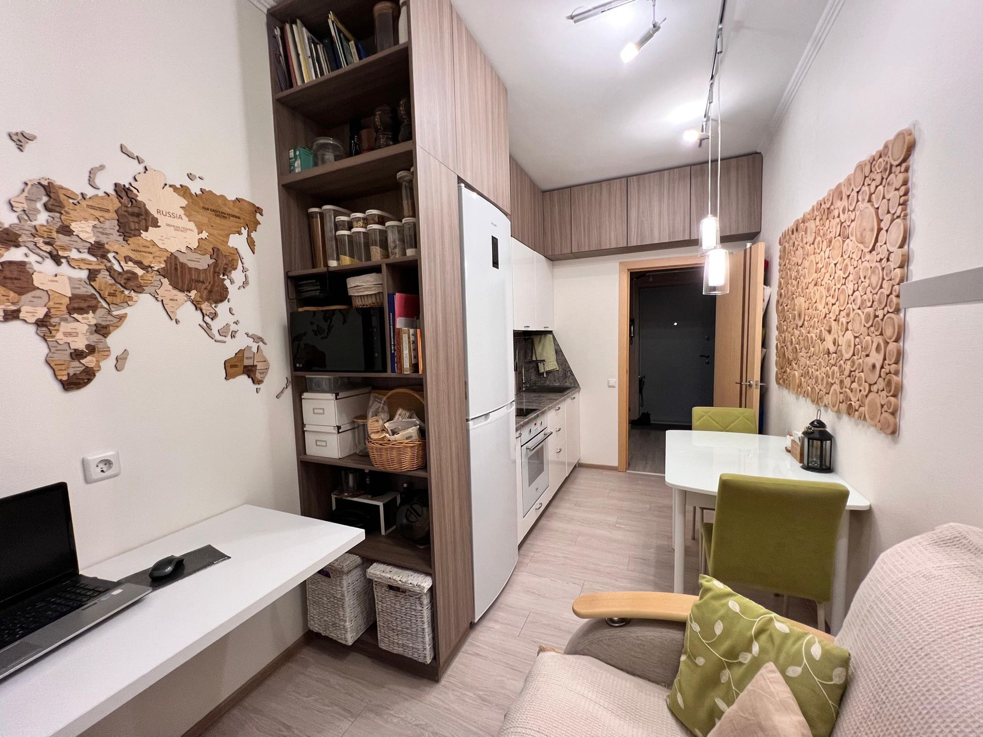 Встроенный кухонный гарнитур и часть мебели остаются новому покупателю.