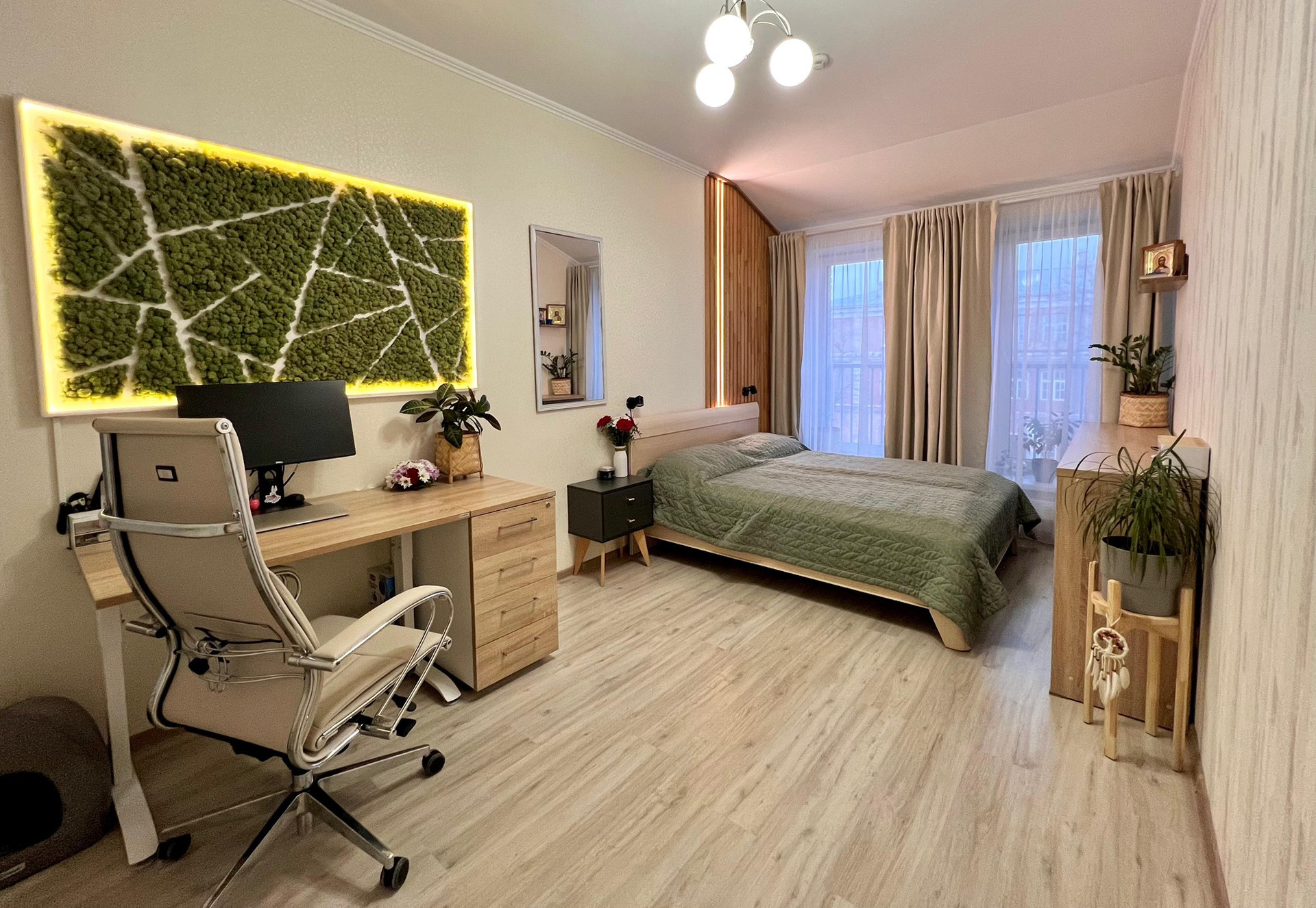 Просторная комната 17,2 кв.м. с двумя панорамными окнами в пол.