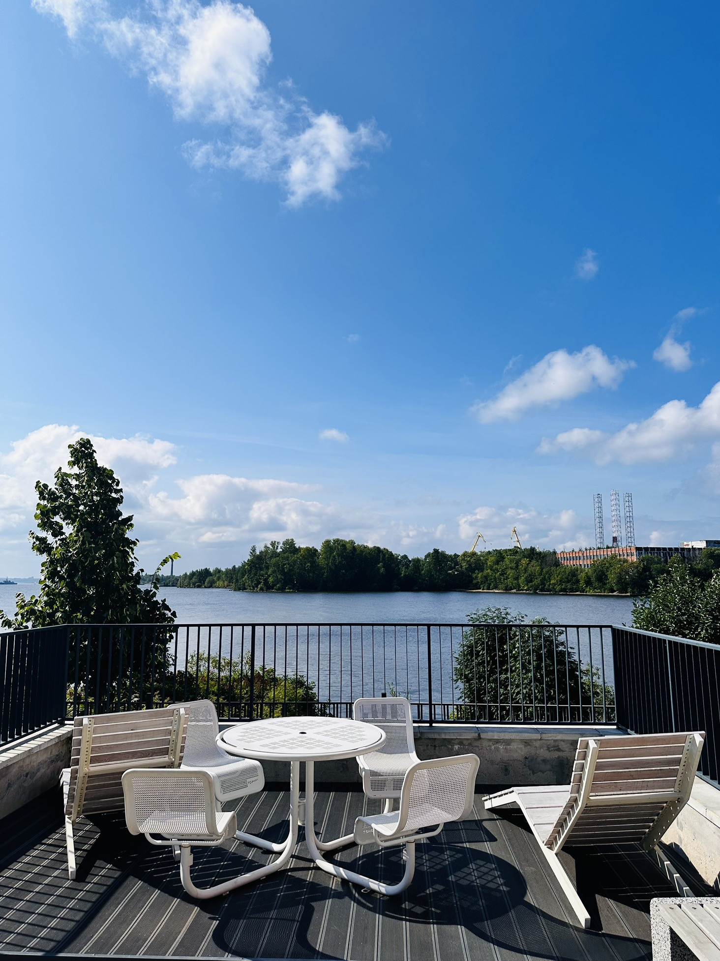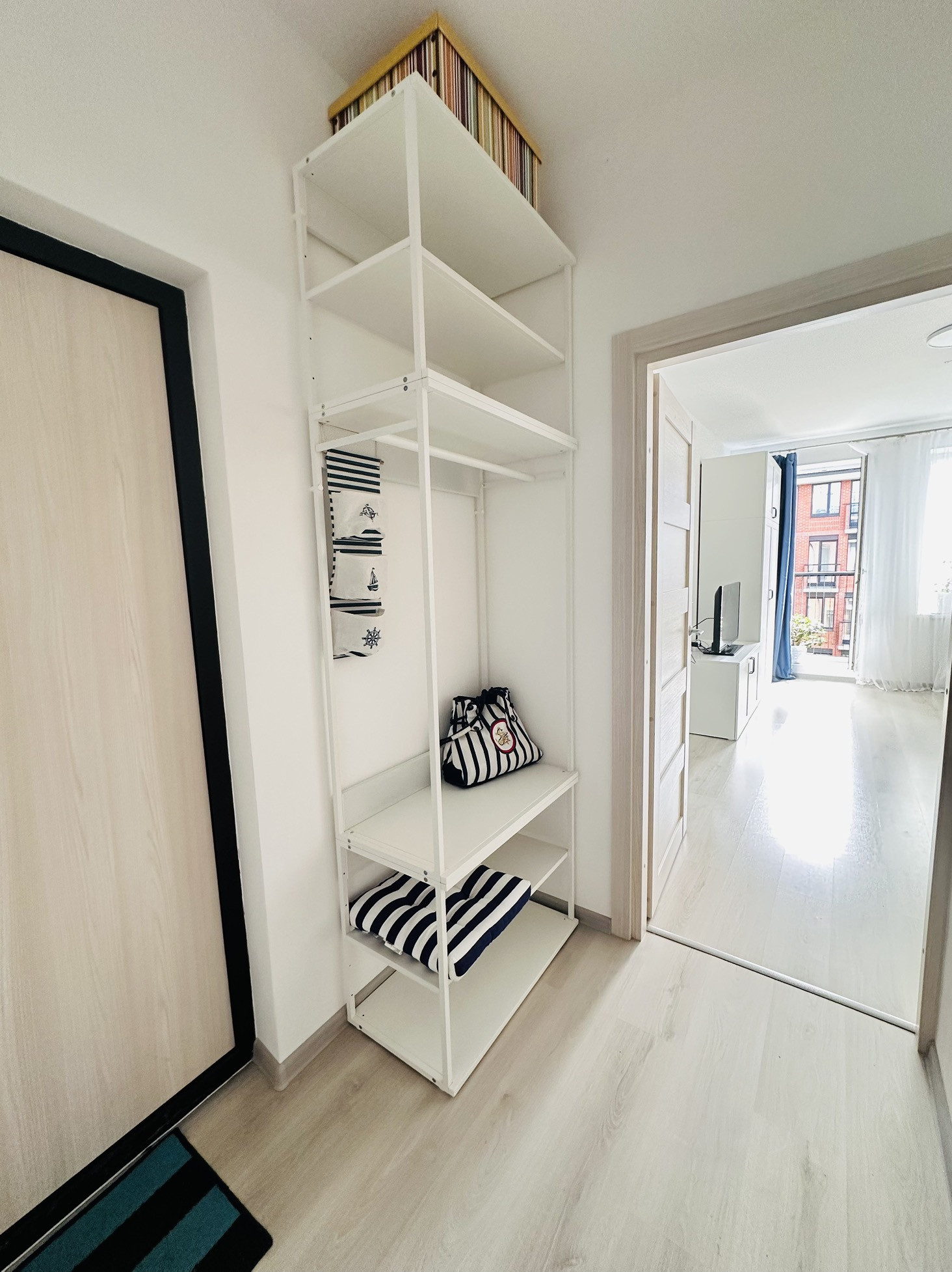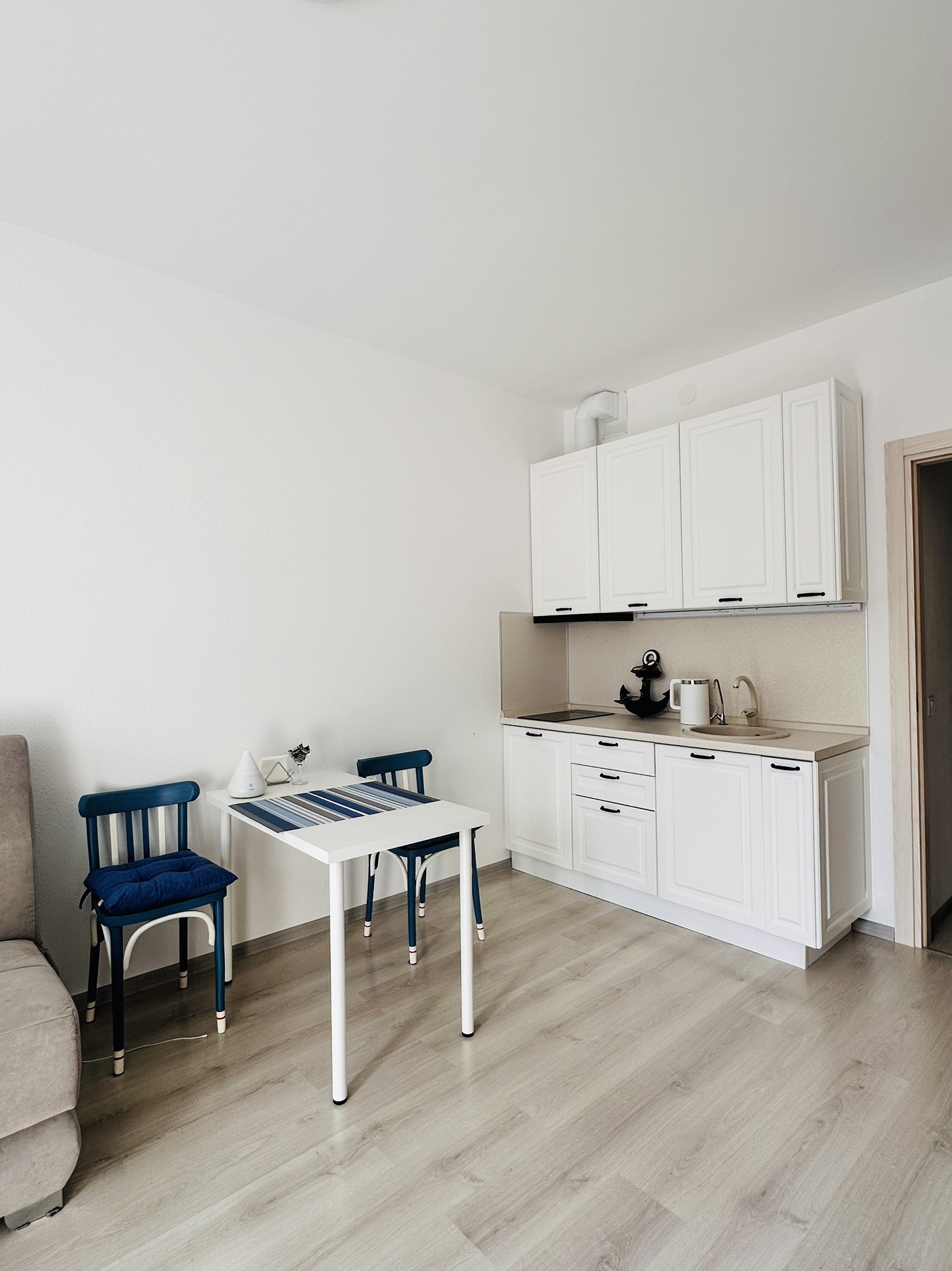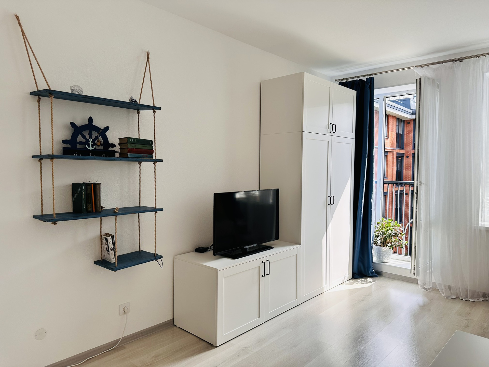 Студия с мебелью, техникой и французским балконом с видом на акваторию.