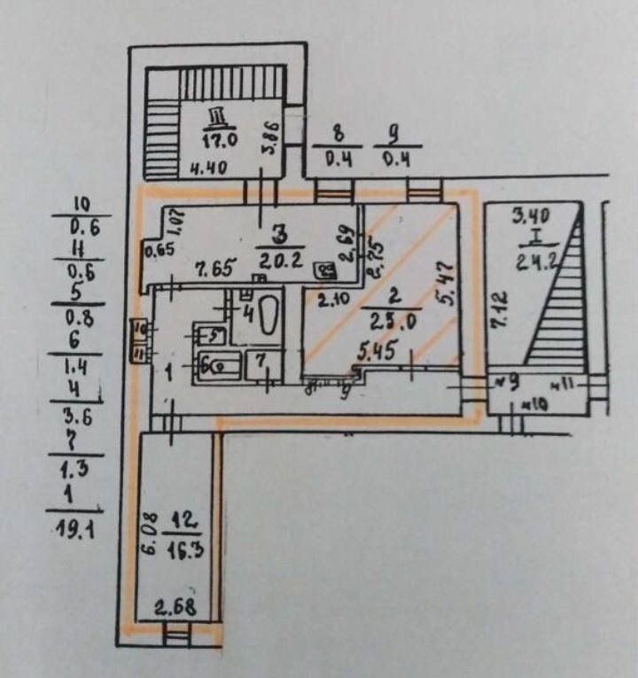 Жилая площадь 41.3 м2