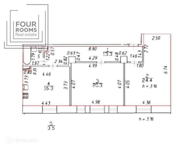 Квартира с ремонтом 2022 года. Так как в квартире практически не жили, износ минимальный. Общая площадь квартиры 77,8 м.кв. Высота потолков 3,16 м, две раздельные комнаты 24,4 и 20,3 м.кв., кухня 16,3 м.кв, санузел совмещенный.