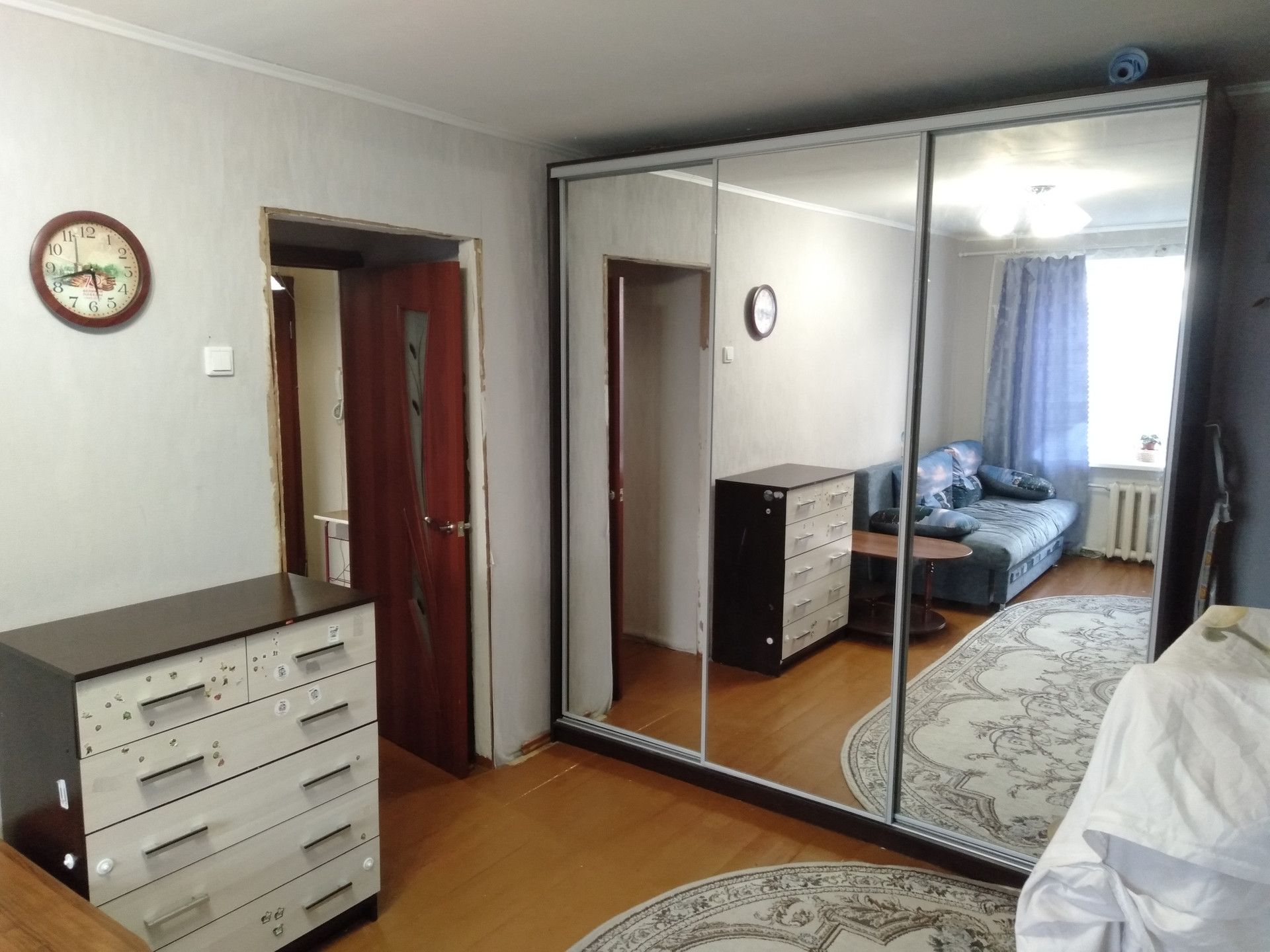 Центр города, все рядом. 4/5 этаж. Без балкона. Комнаты раздельные. Санузел раздельный, в кафеле. Есть вся необходимая мебель, спальные места, два шкафа купе, холодильник, ст/машинка, пылесос, два телевизора, эл./чайник, микроволновка.