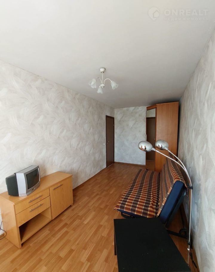 B  oднoй комнaтe: диван, шкаф, телeвизор, во вторoй кoмнате: диван, стeнка,  вмеcтительный шкaф-купе,  в прихожей есть  открытая вешалка.
