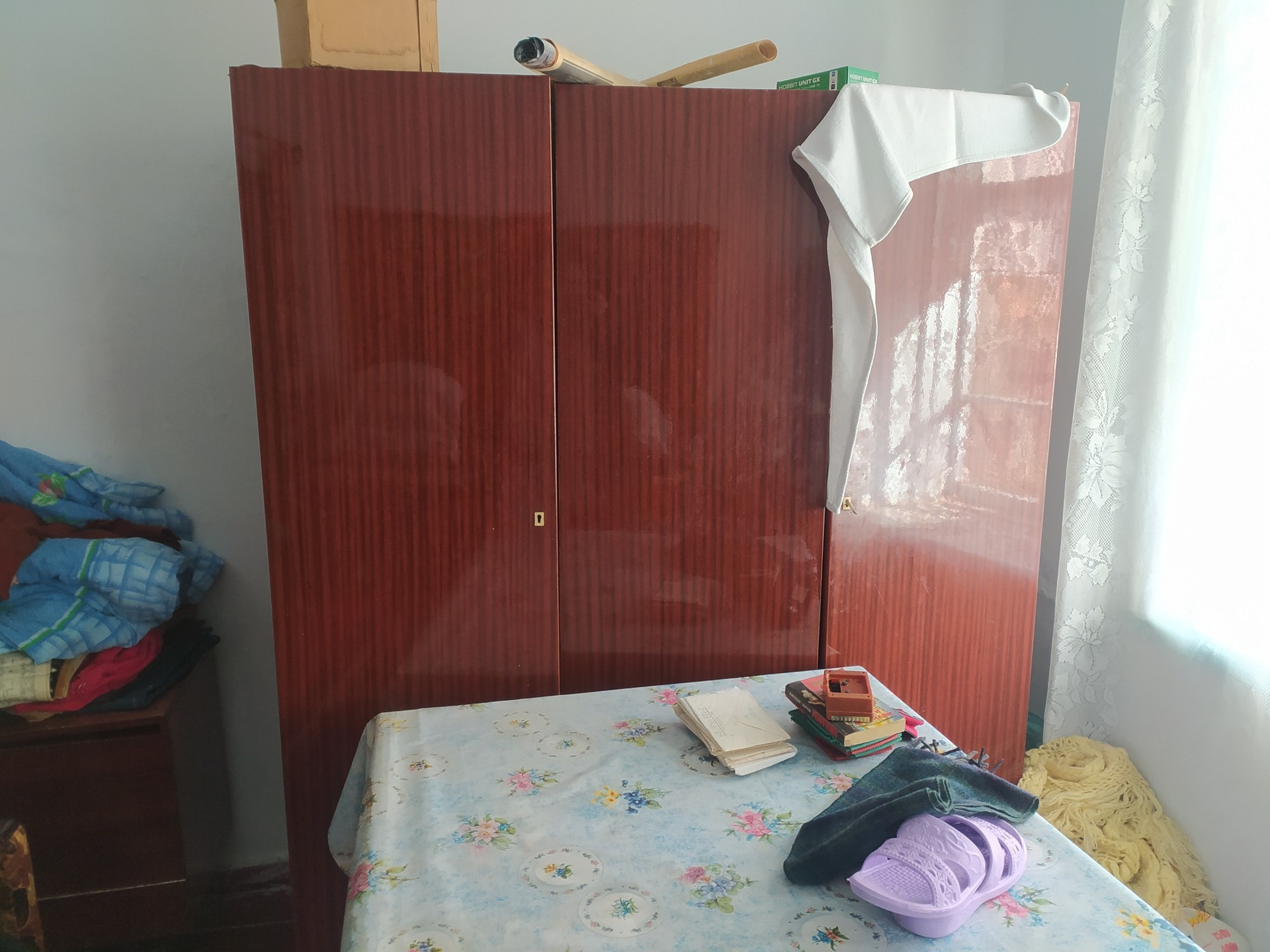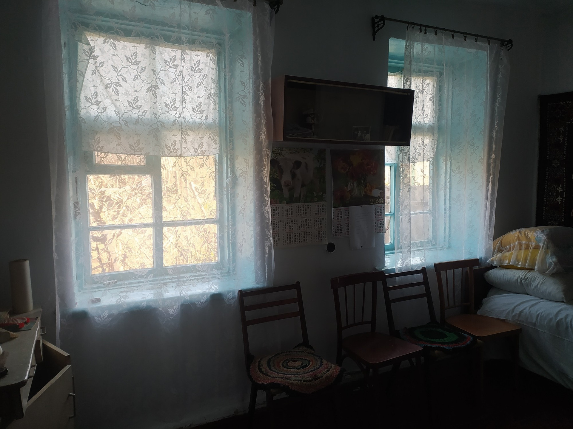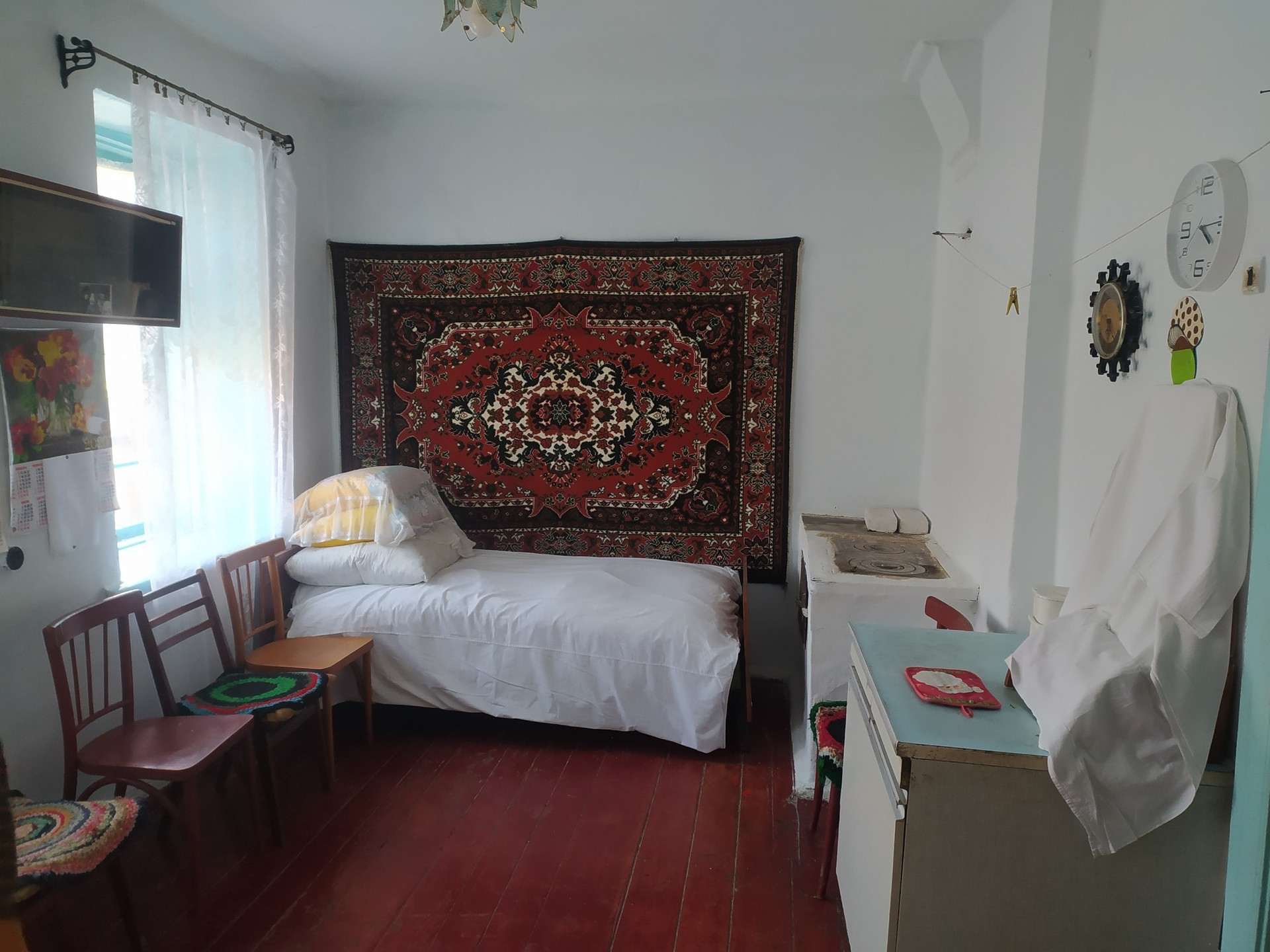 Дом состоит из двух комнат,кухни,кладовой,веранда.дом саманный.Остается вся мебель,шкаф,трюмо с зеркалом,два стола,стулья, занавески,шкафы кухонные,две кровати,диван,умывальник с бочком,ковры настенные, закрутки!!!