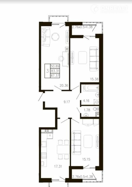 Общая площадь 87.4 м2