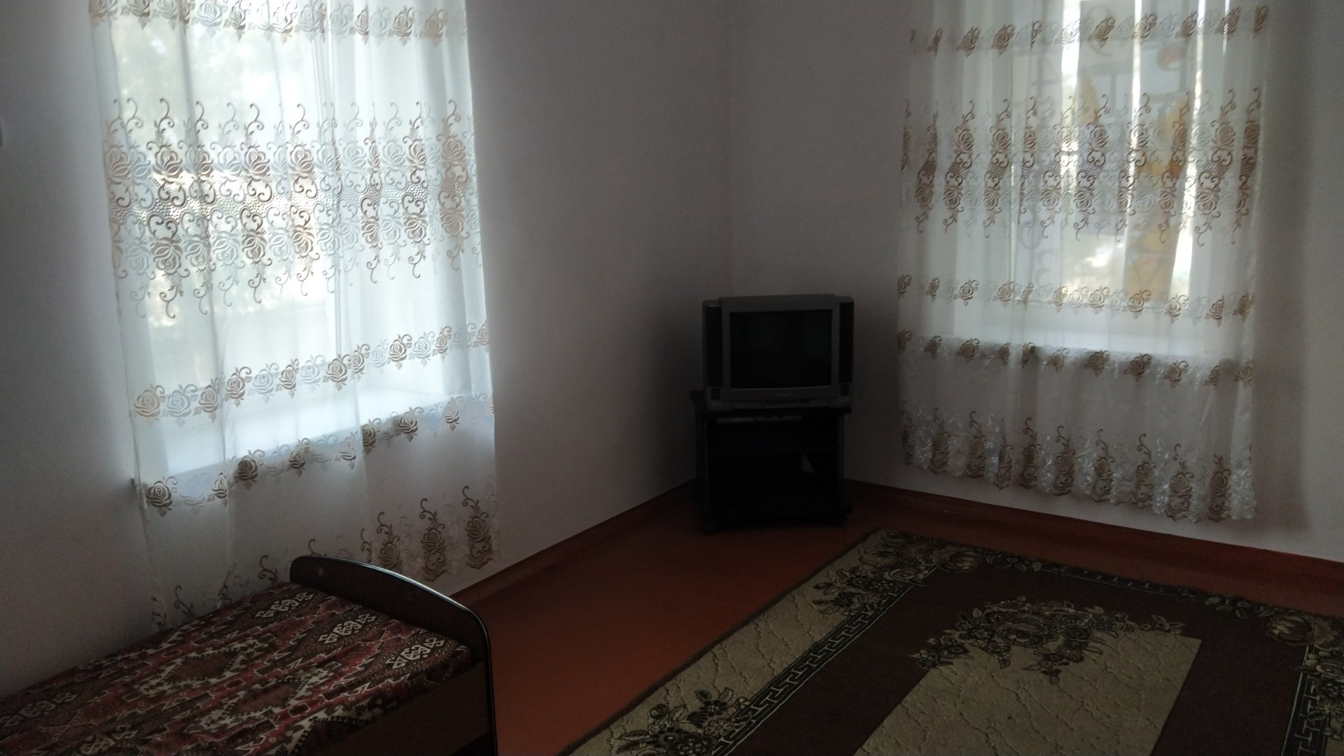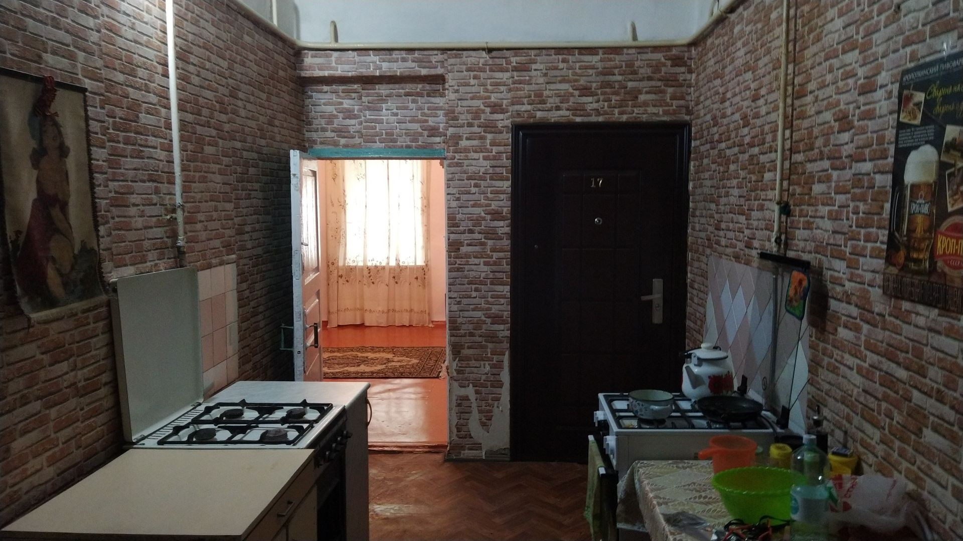 коммунальная квартира с местами общего пользования секционного типа. Центр города.проживает одна соседка. Кухня и туалет общие, ванна у каждого своя. газ форсунка(1500р в месяц при 3 прописанных) окна МПО. до моря 240 км.